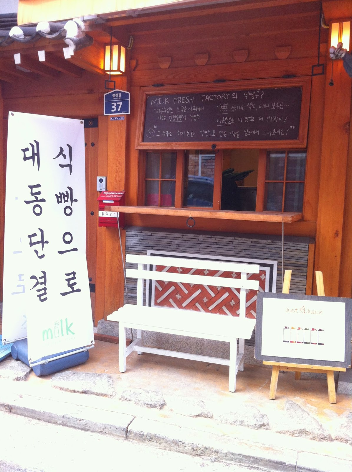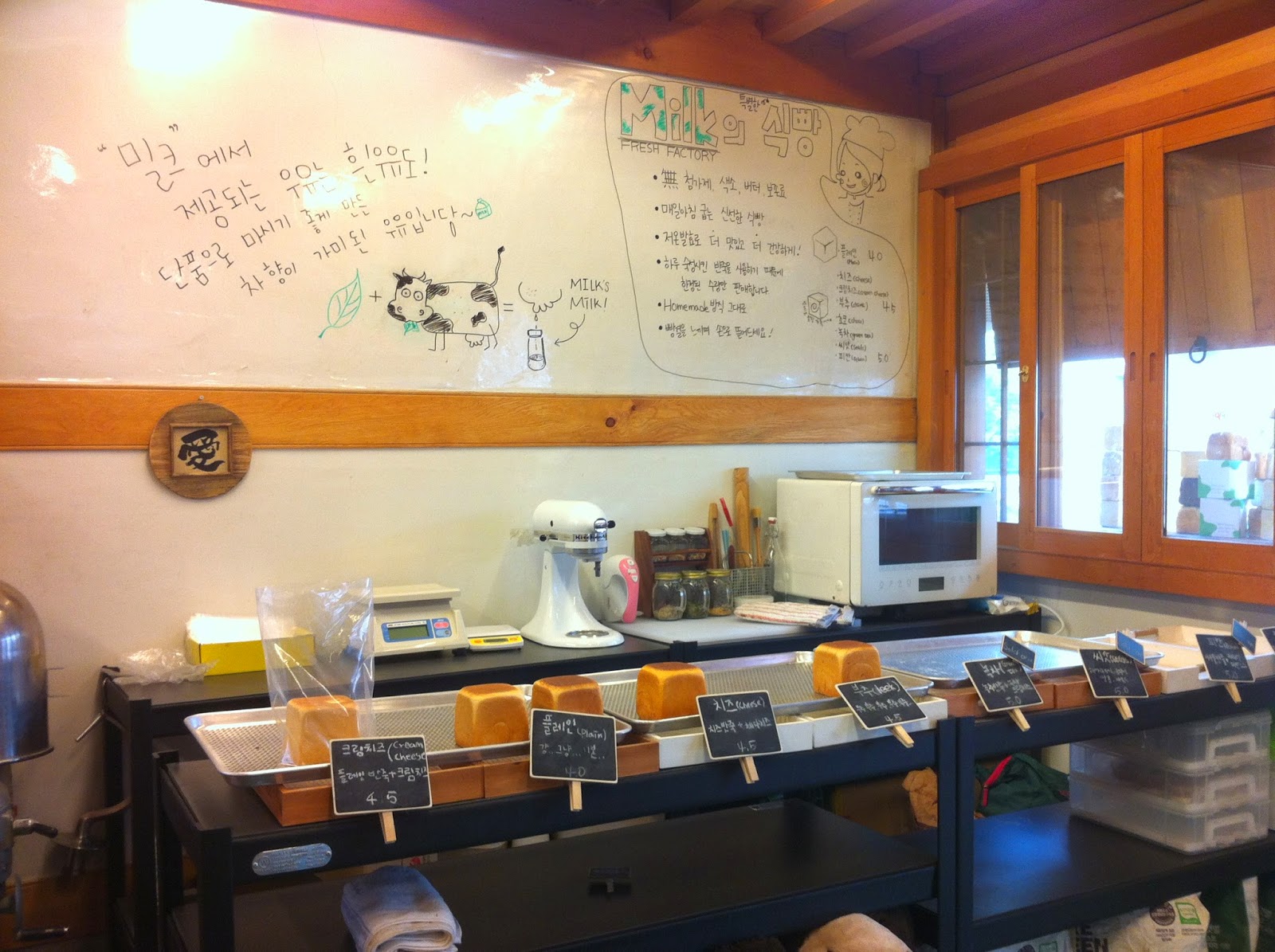 店面是傳統韓屋的Milk 밀크麵包店。