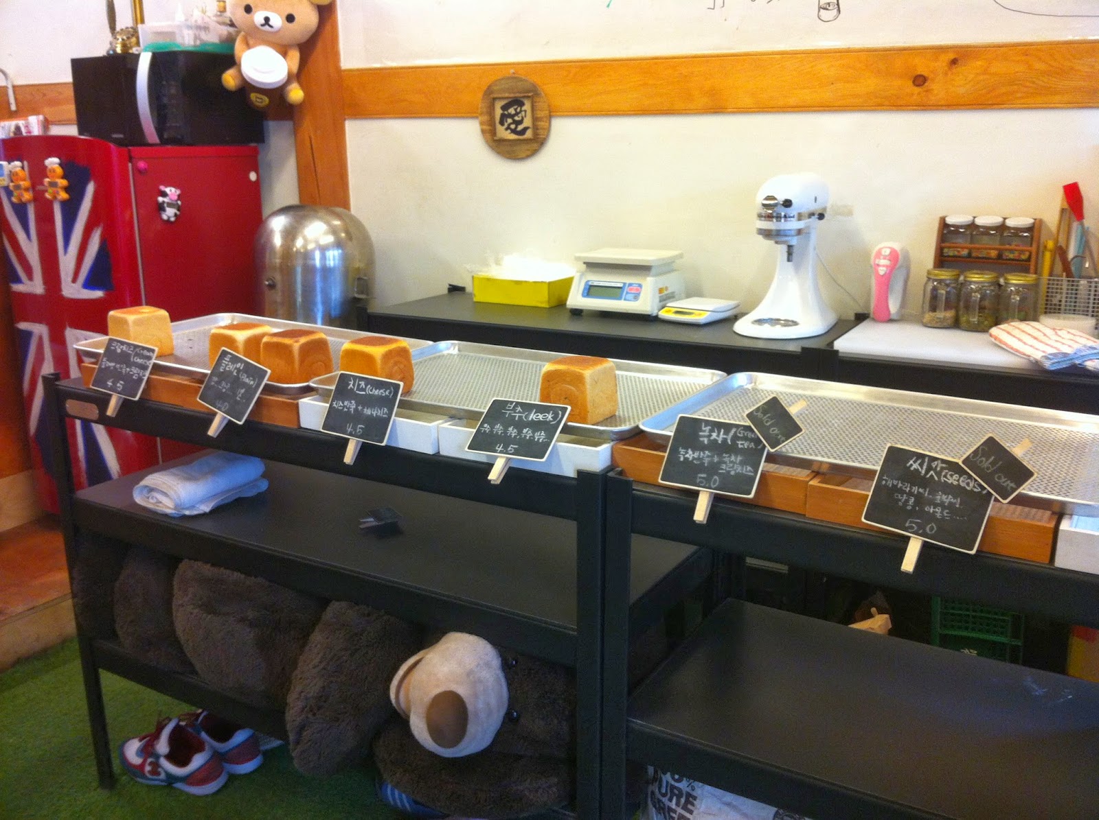 外面的橫額寫著的「식빵으로 대동단결」的意思是:「用麵包團結大同」,好偉大的理念!
