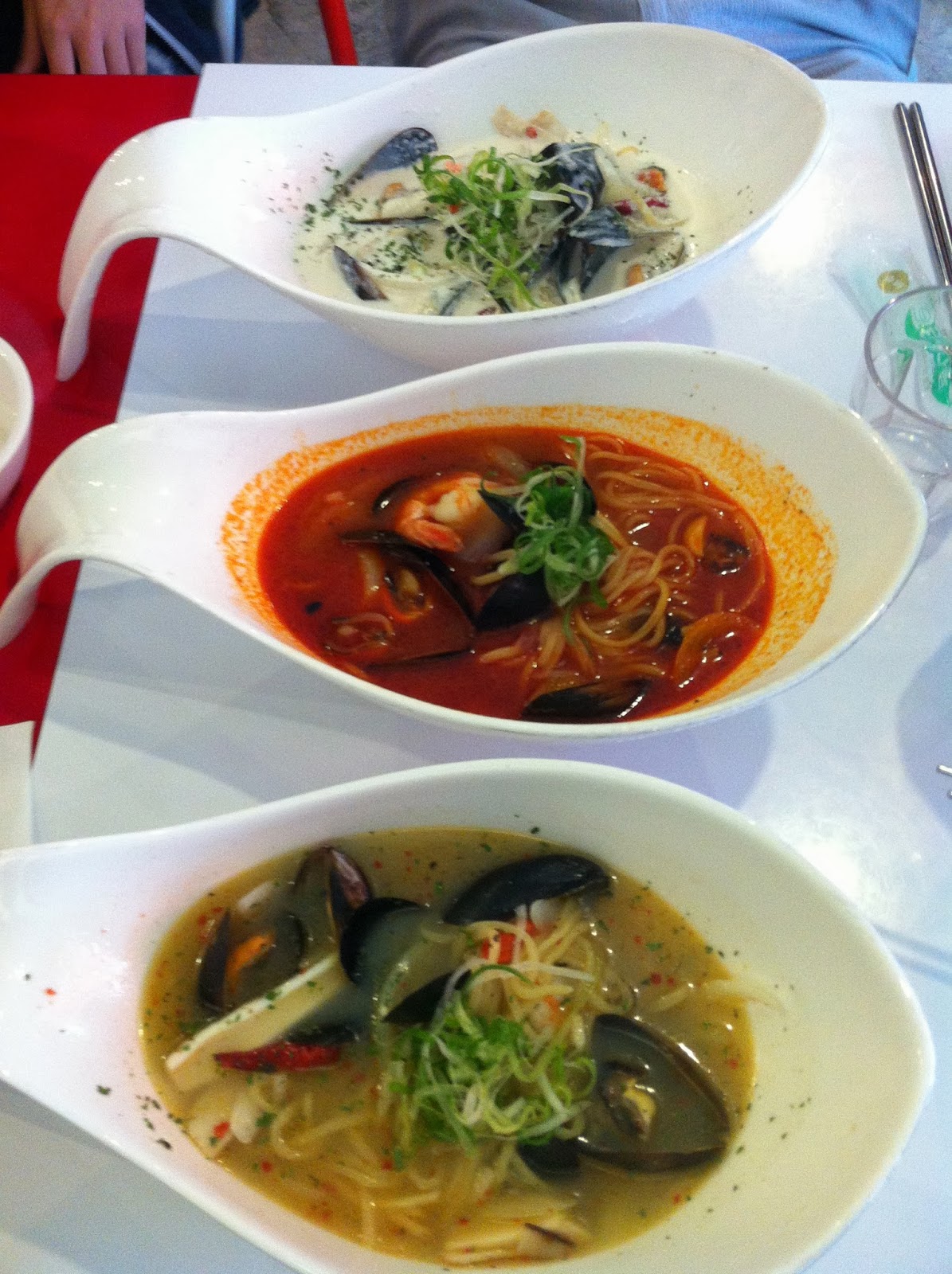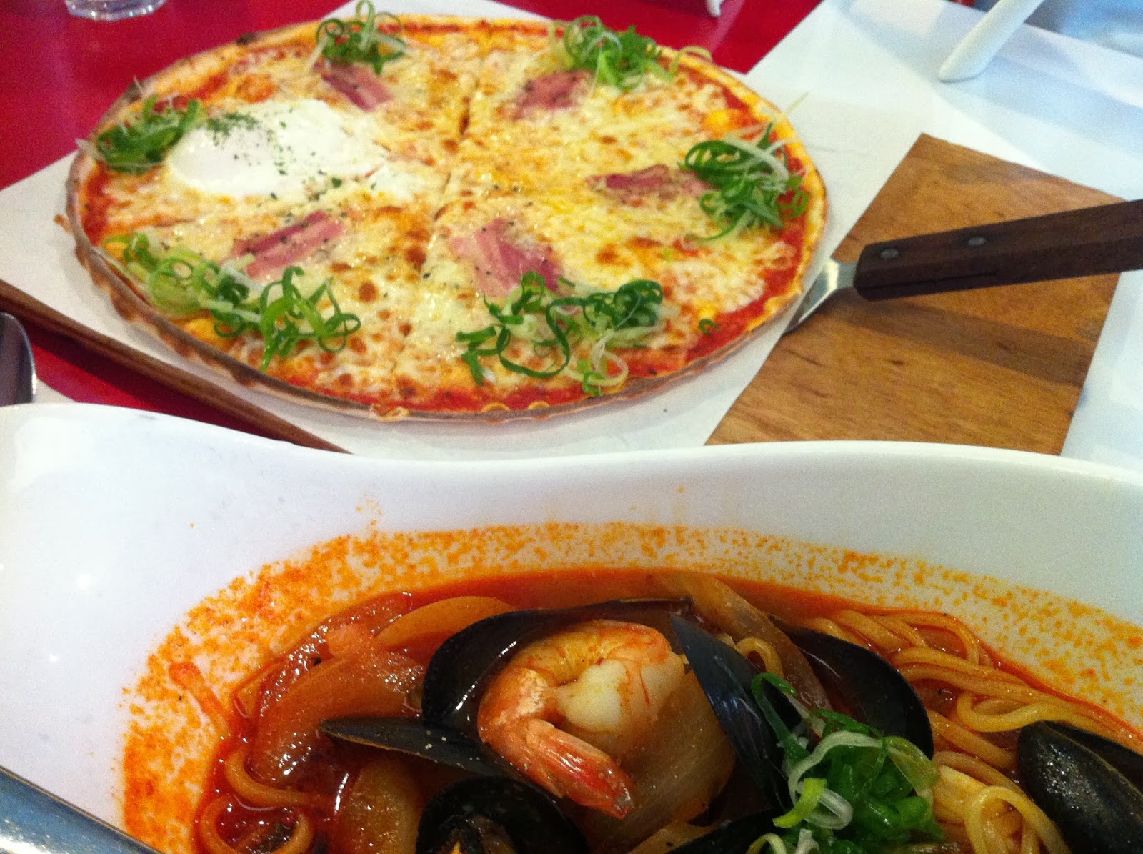 在弘大的뽕신(Bbongsin),韓式海鮮麵和意大利麵不分彼此,混血變成퓨전(fushion)美味。