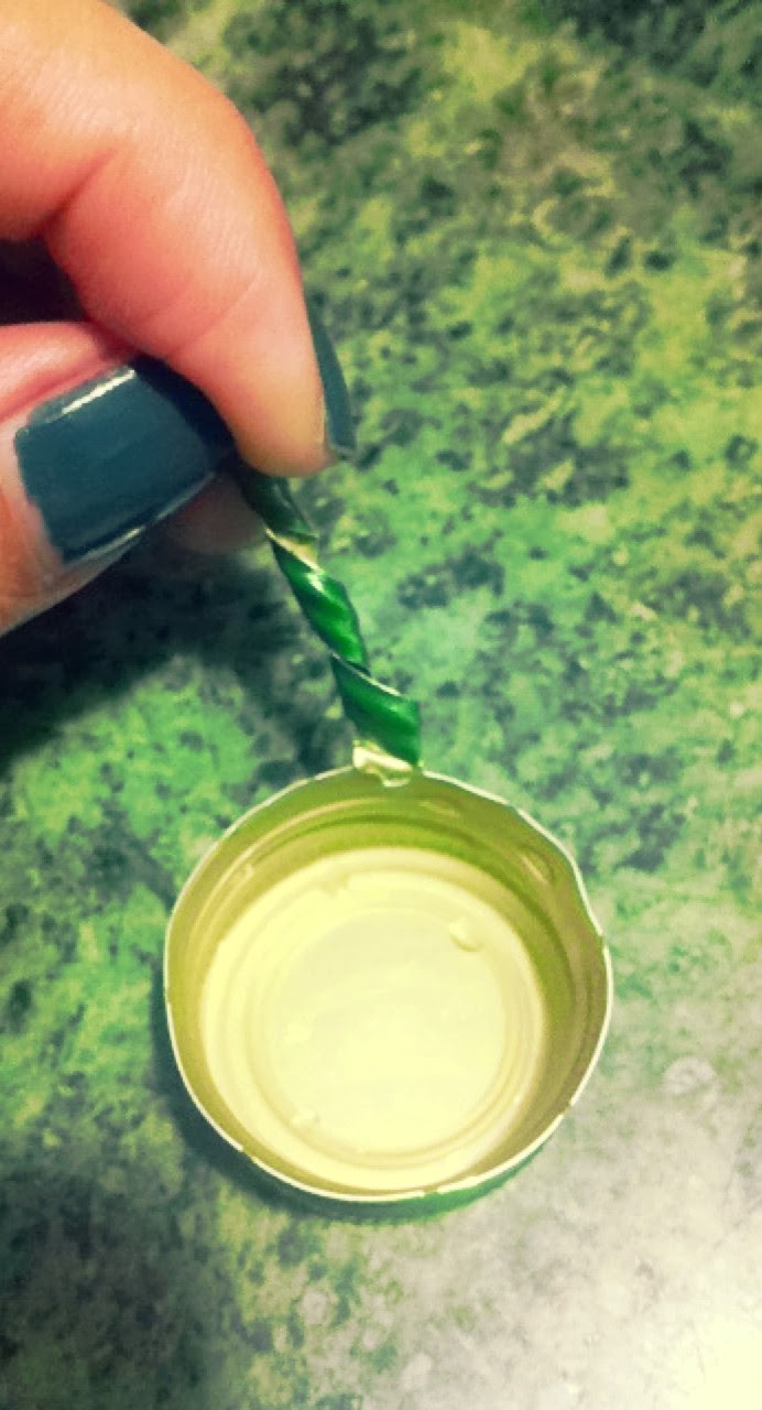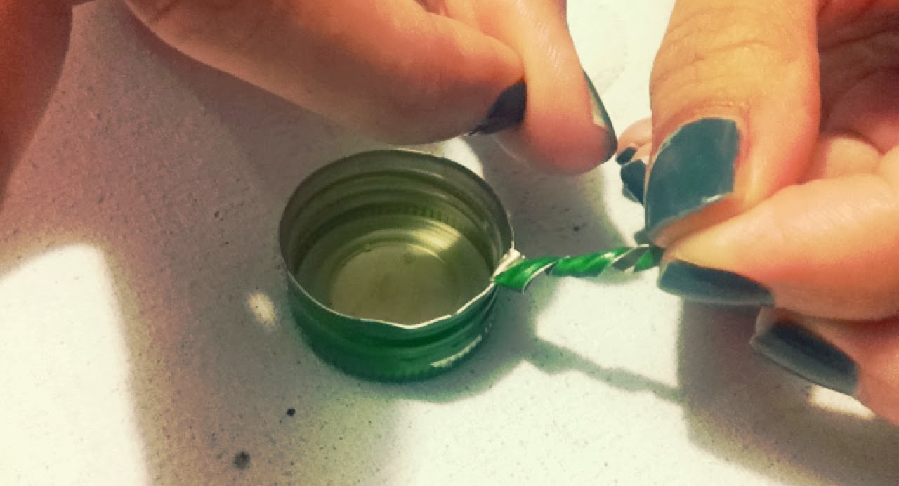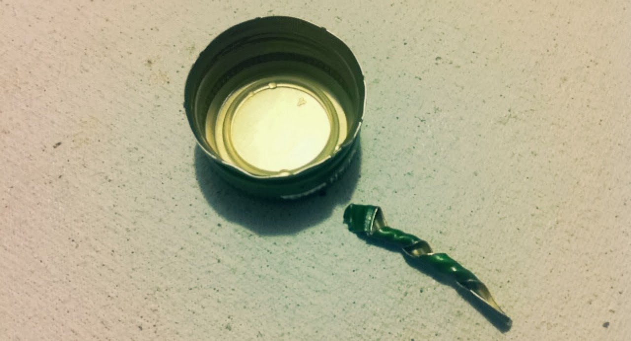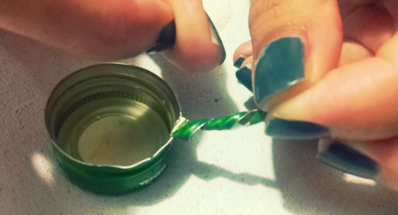 第一:先把瓶蓋下面的鐵環扭成這個形態,但又不能扭太多,這樣才可以維持久一點。