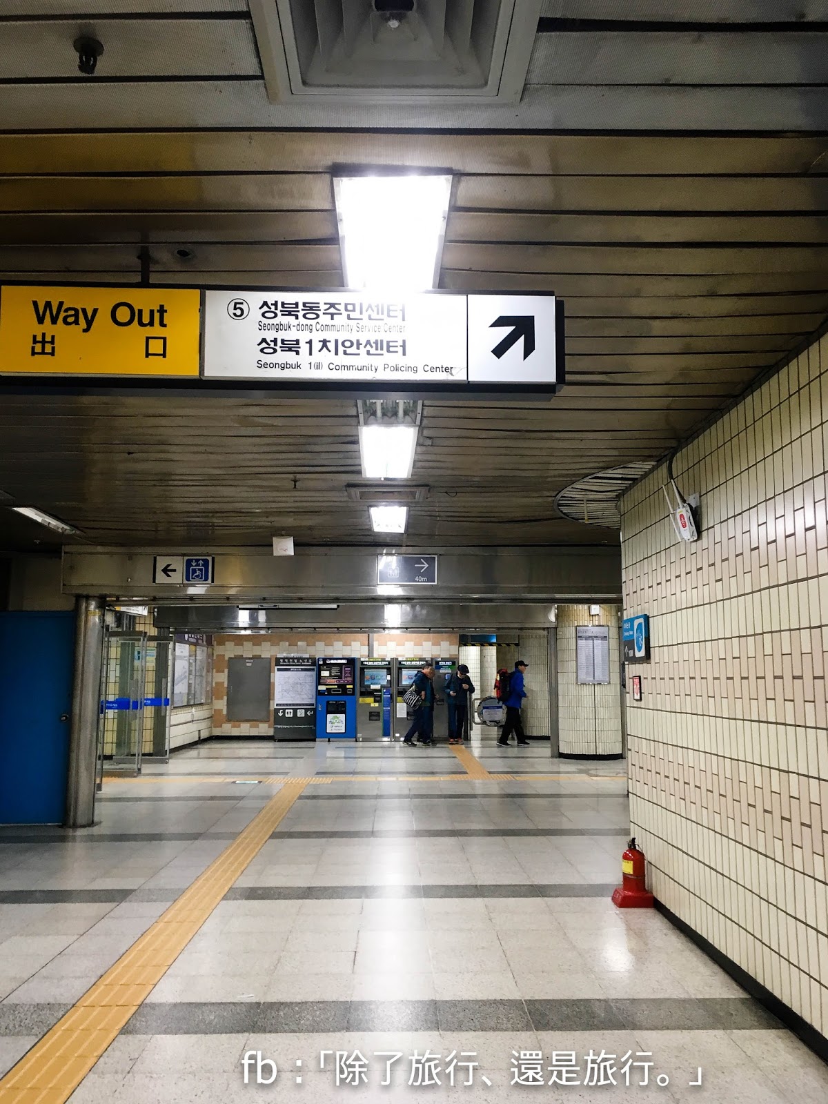 搭乘地鐵4號線於「漢城大入口站(419)」下車,從5號出口出來後,