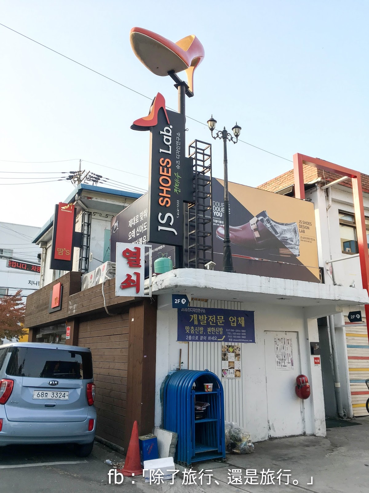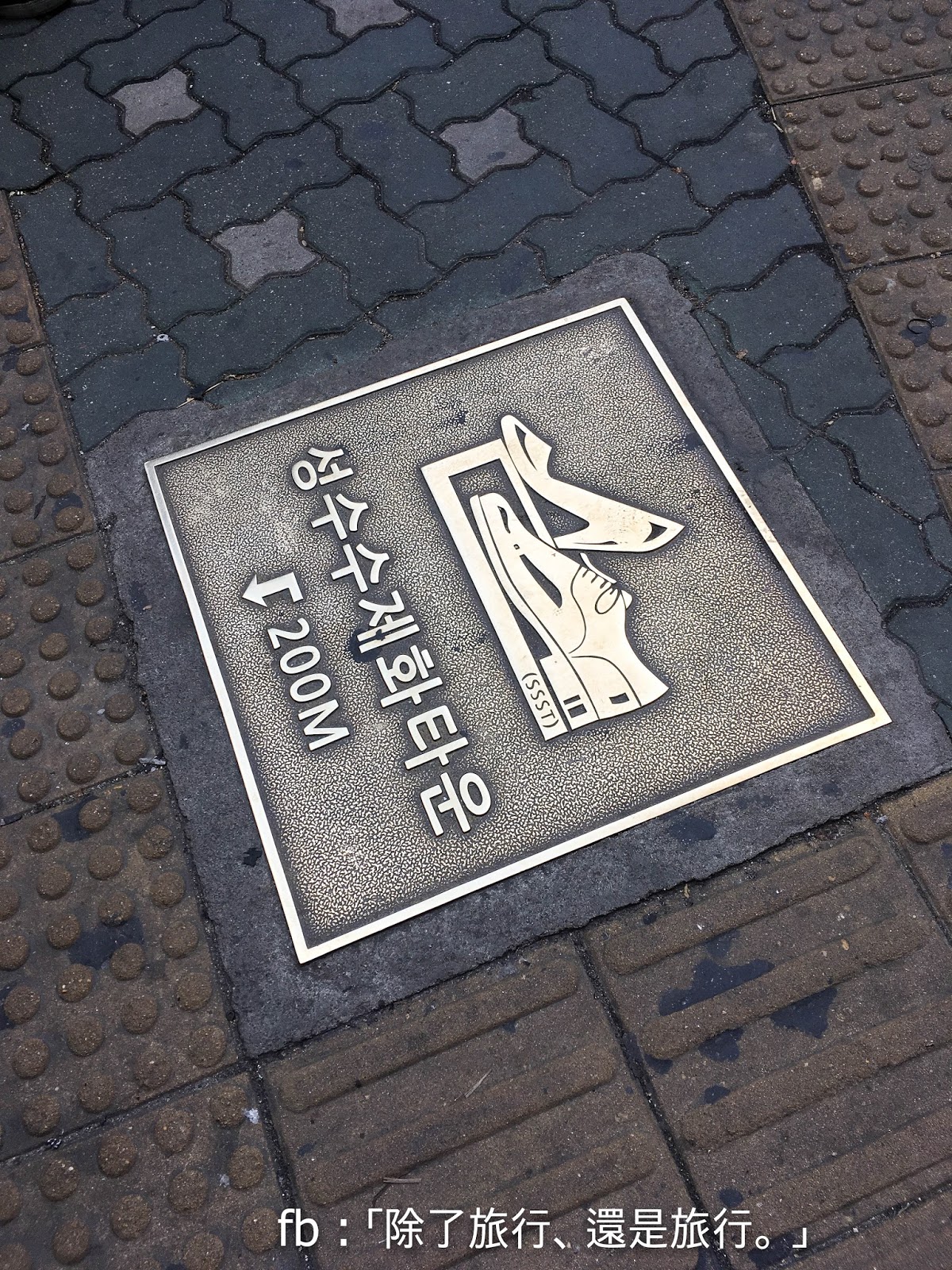在4號出口出來的話就會看到地上這個標誌:「往聖水手工鞋街 200米」。