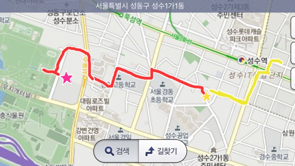 然後往回走(紅色路線)往首爾林和understand avenue(粉紅星星)。