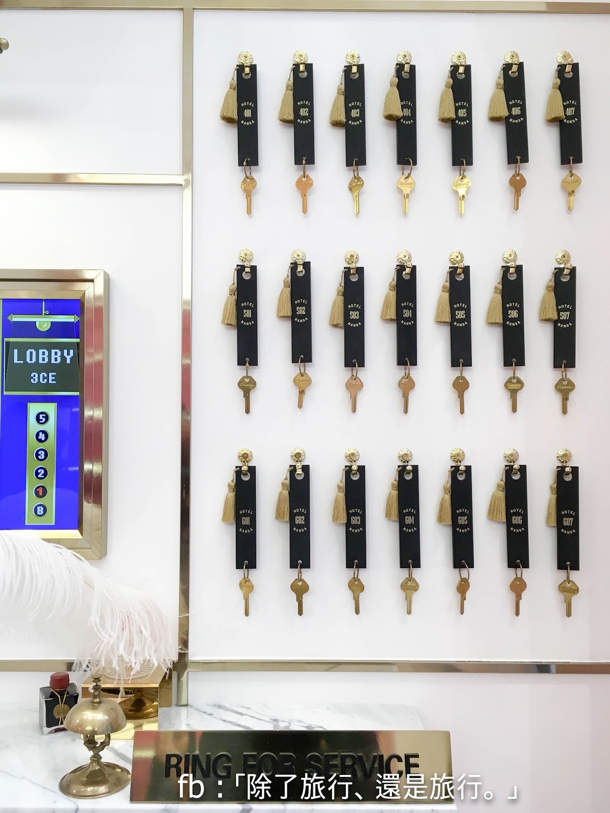 優雅復古的 information counter 很像真,還有一條條鑰匙,我都快要相信上面是房間了。
