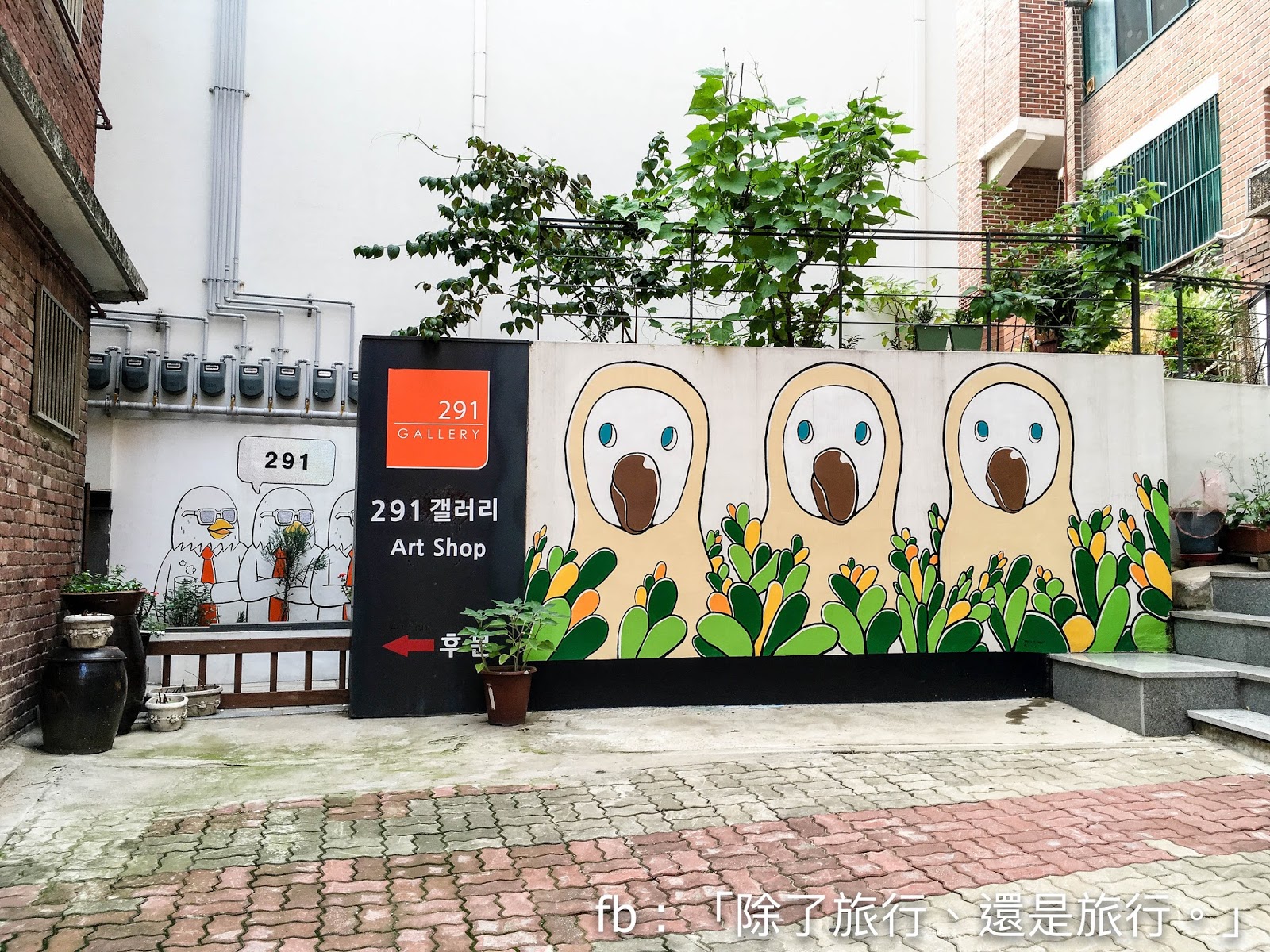 art shop外面的牆上也畫了很可愛的壁畫,你覺得那是鳥還是裝成鳥的人?