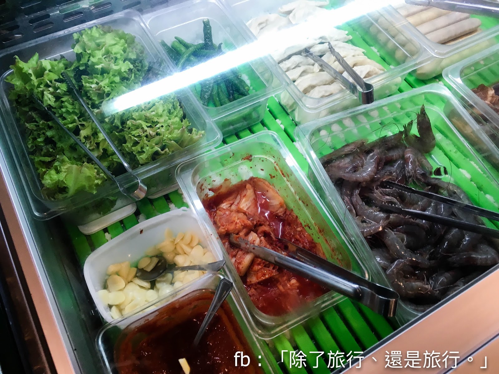 魚卷、三層肉、中間的不知道是豬還是牛、菇也是可以用來煎,沒可能填不飽肚子了吧!