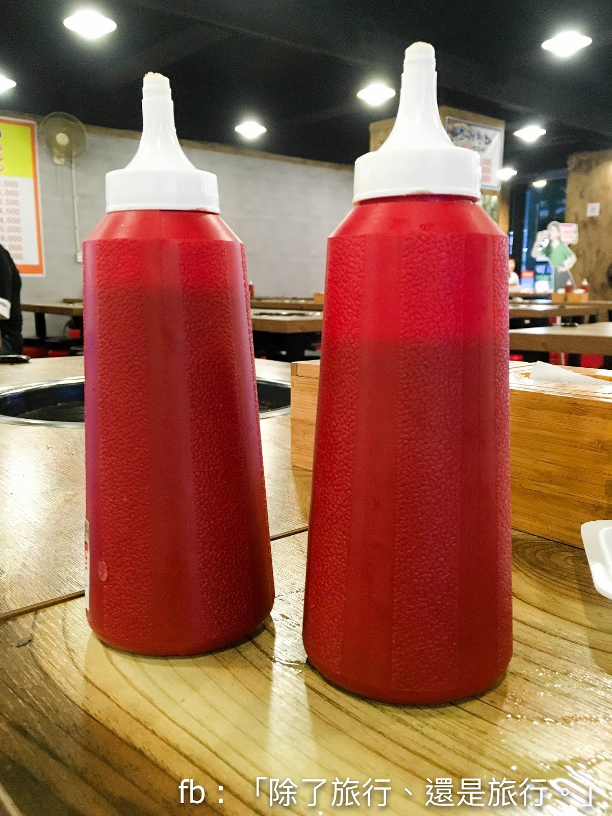 桌上有海鮮用的辣醬,倒在小碟子上用來蘸貝殼~