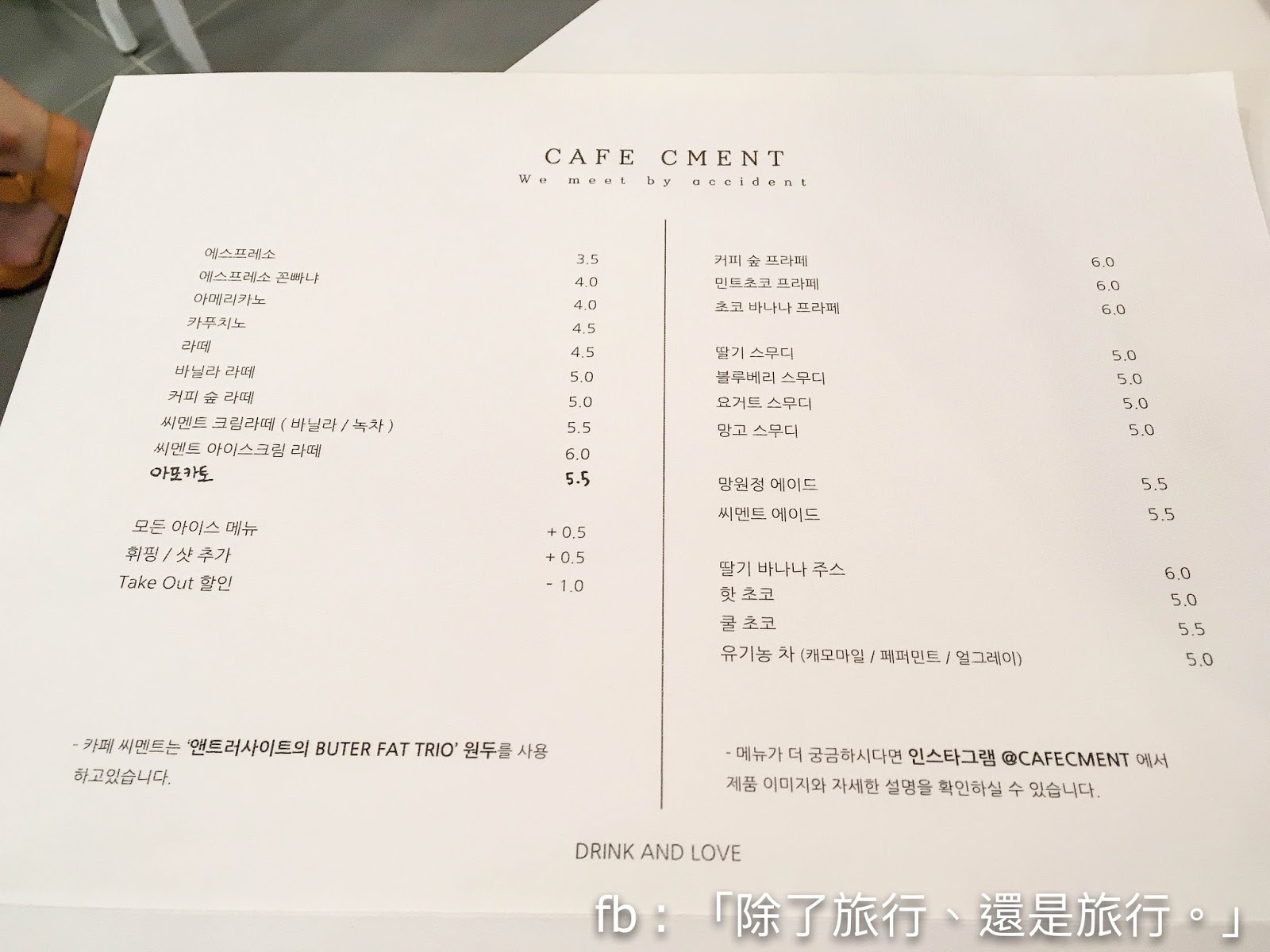 他們沒有自家烘焙豆子,不過用的也是韓國非常有名的咖啡店-ANTHRACITE的自家 BUTTER FAT TRIO的豆子。