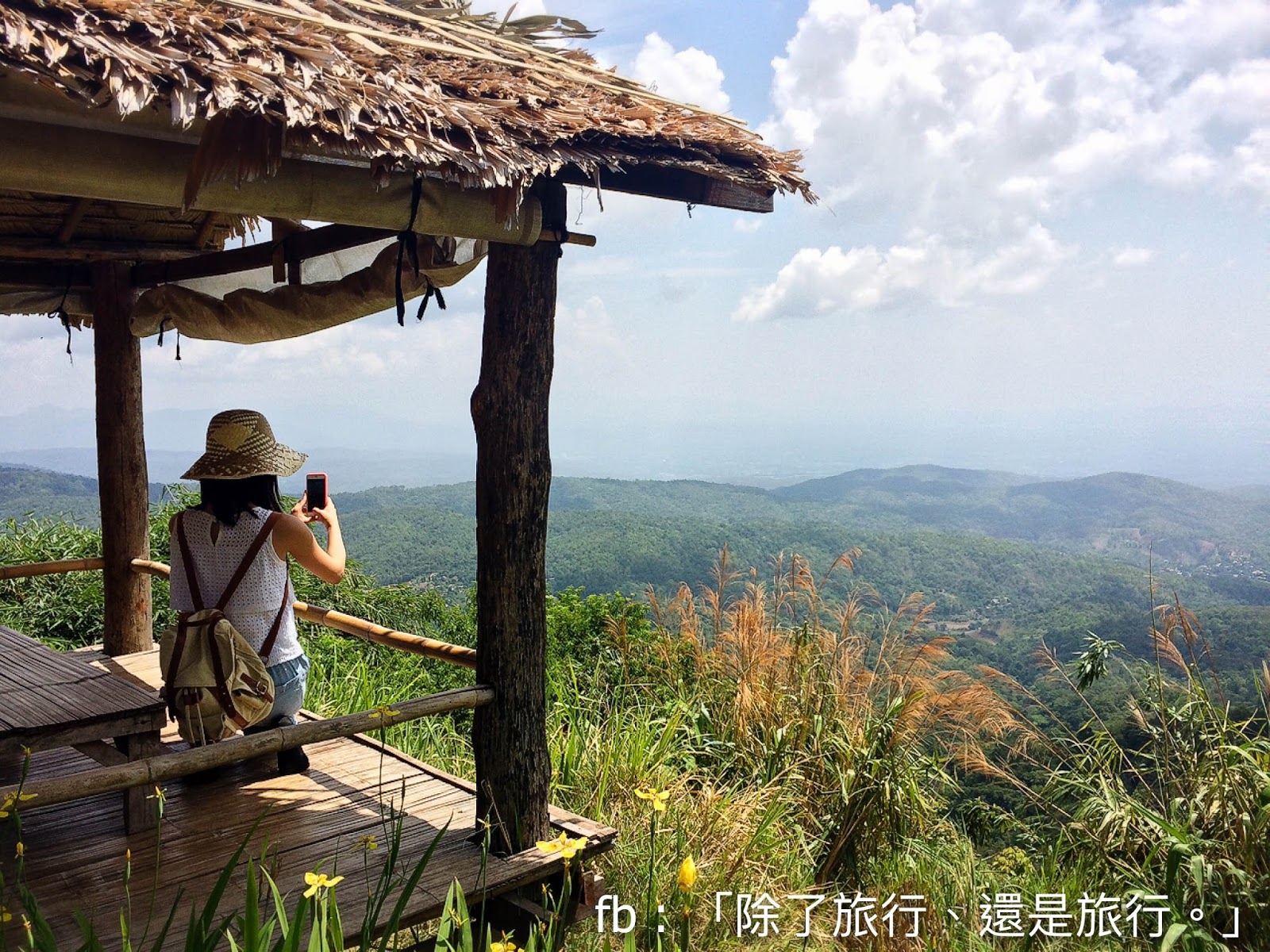 在這個原始涼亭裡遠望山巒,很有禪味。