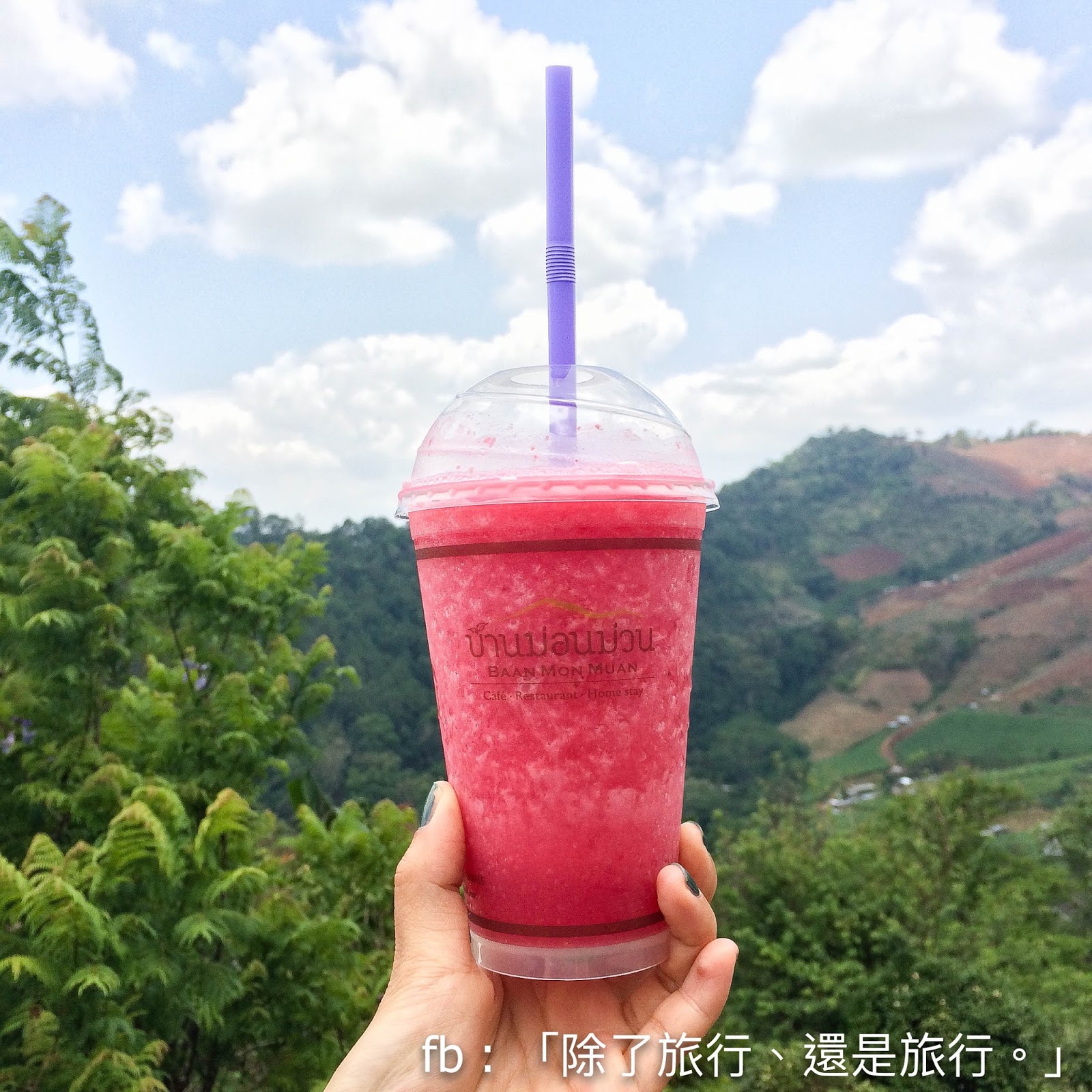 青山藍天白雲配上士多啤梨smoothies-大自然就是一幅完美的圖畫。