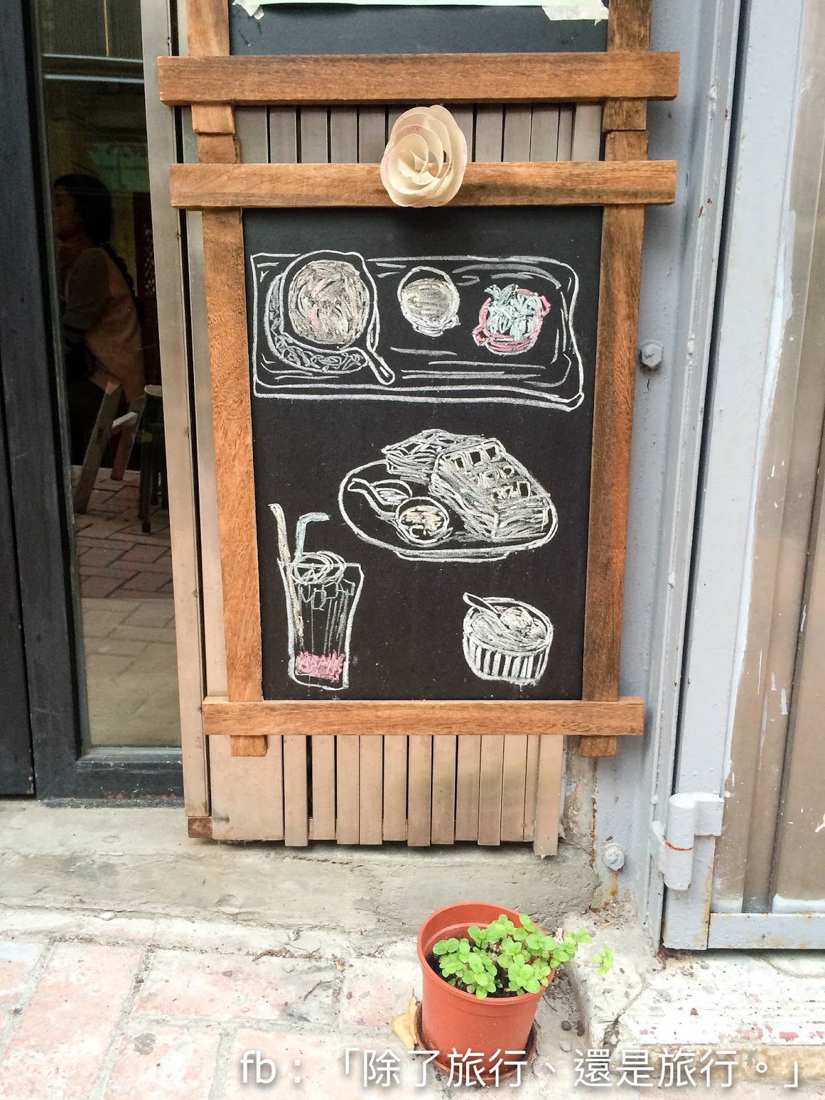 一轉彎,就看到門外的創意擺設,梯子上寫的是特色餐點,非常有心思。
