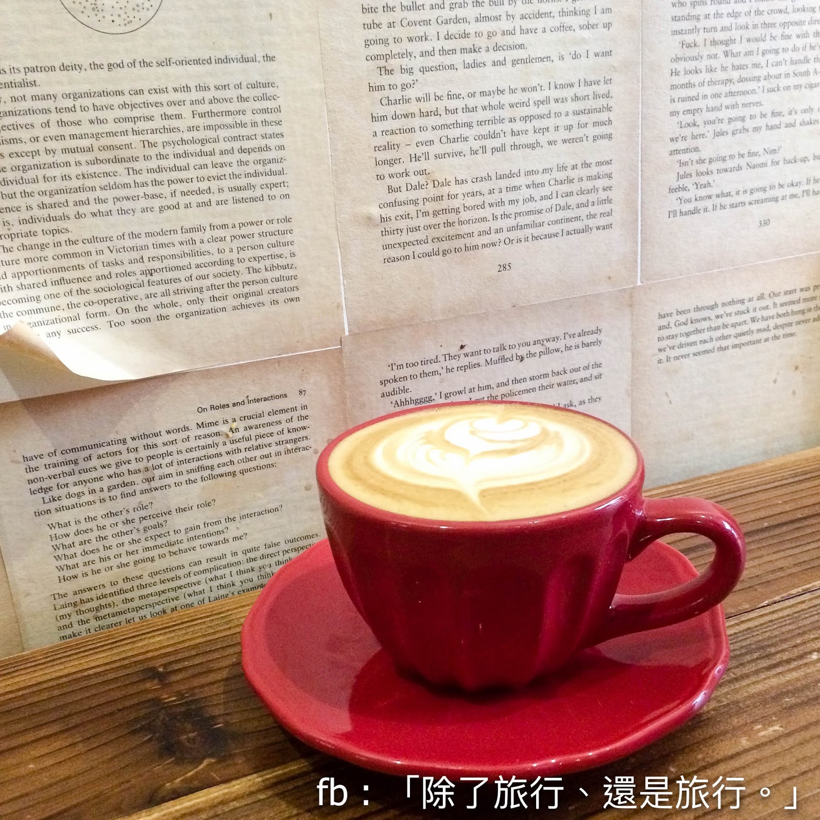 因為我們正是坐在書頁牆的前面,享受著這杯拉花很美、濃郁豐厚的cappuicino。