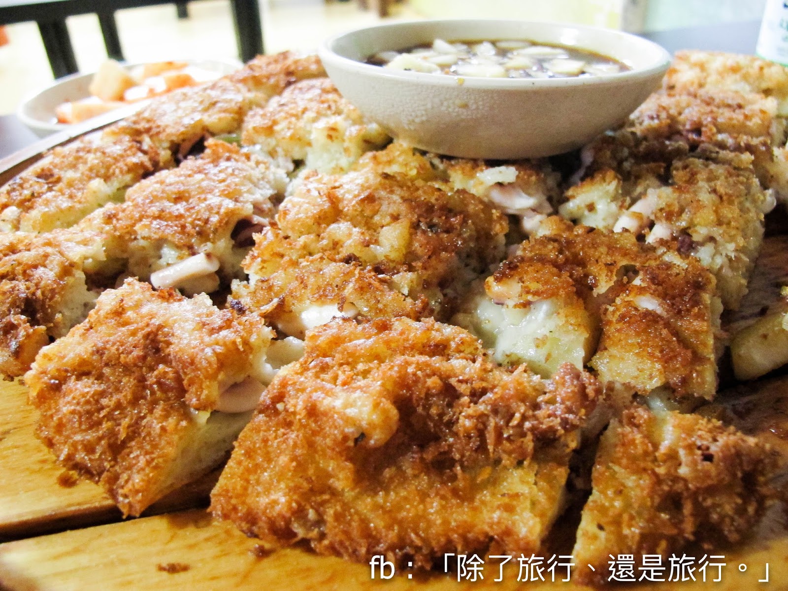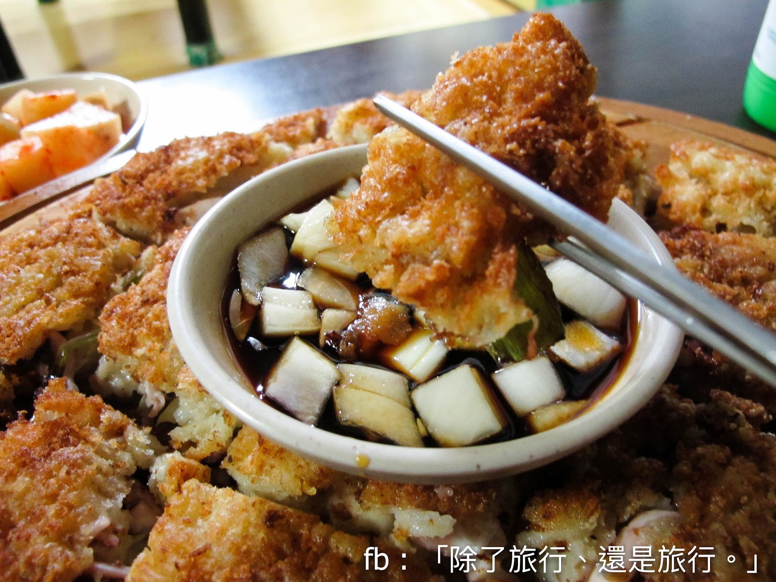 蔥煎餅做得外面香脆之餘,裡面仍然保持濕潤,蘸些洋蔥醬油更美味。