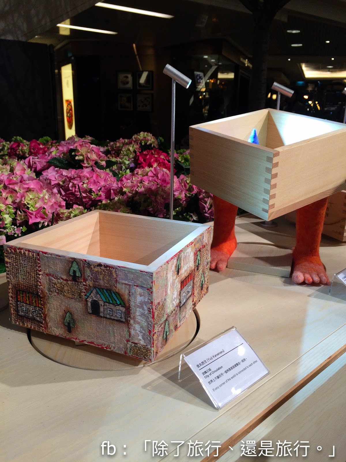 藝術家crossover 日本清酒的木製容器「枡」的藝術展覽,非常有創意。