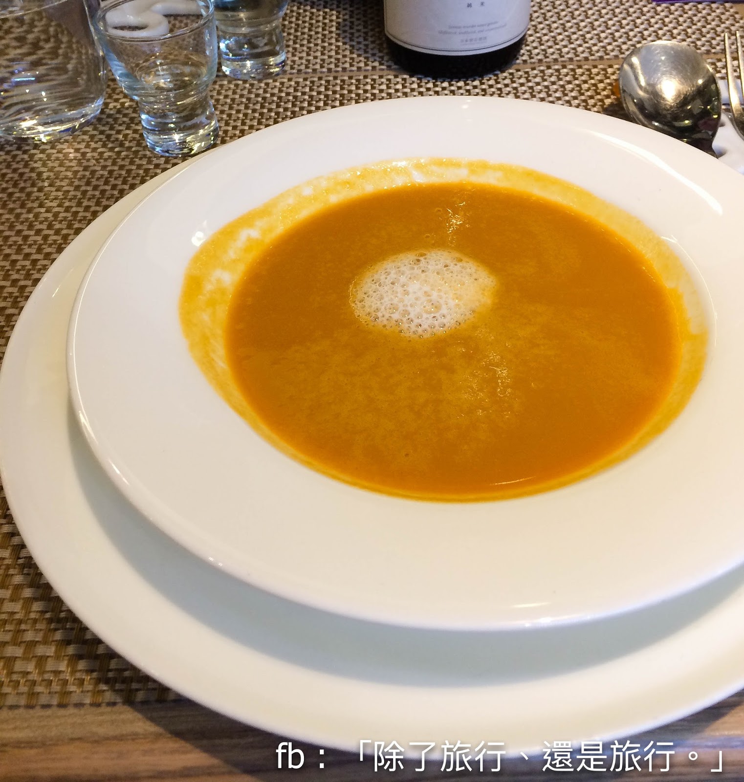 龍蝦濃湯伴清酒及伴鮮奶泡沫