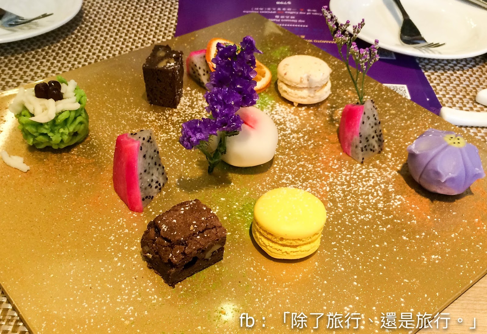 最後的甜品拼盤也充滿驚喜,和菓子配brownies和macaron的配搭,那個女生會不喜歡?