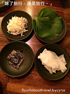 芝麻葉、蘿蔔片、紫菜、粉絲沙律。