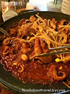 應該是因為新鮮才會久煮不韌的小章魚,加上韓式的辣,愛辣的人一定會吃得很過癮。
