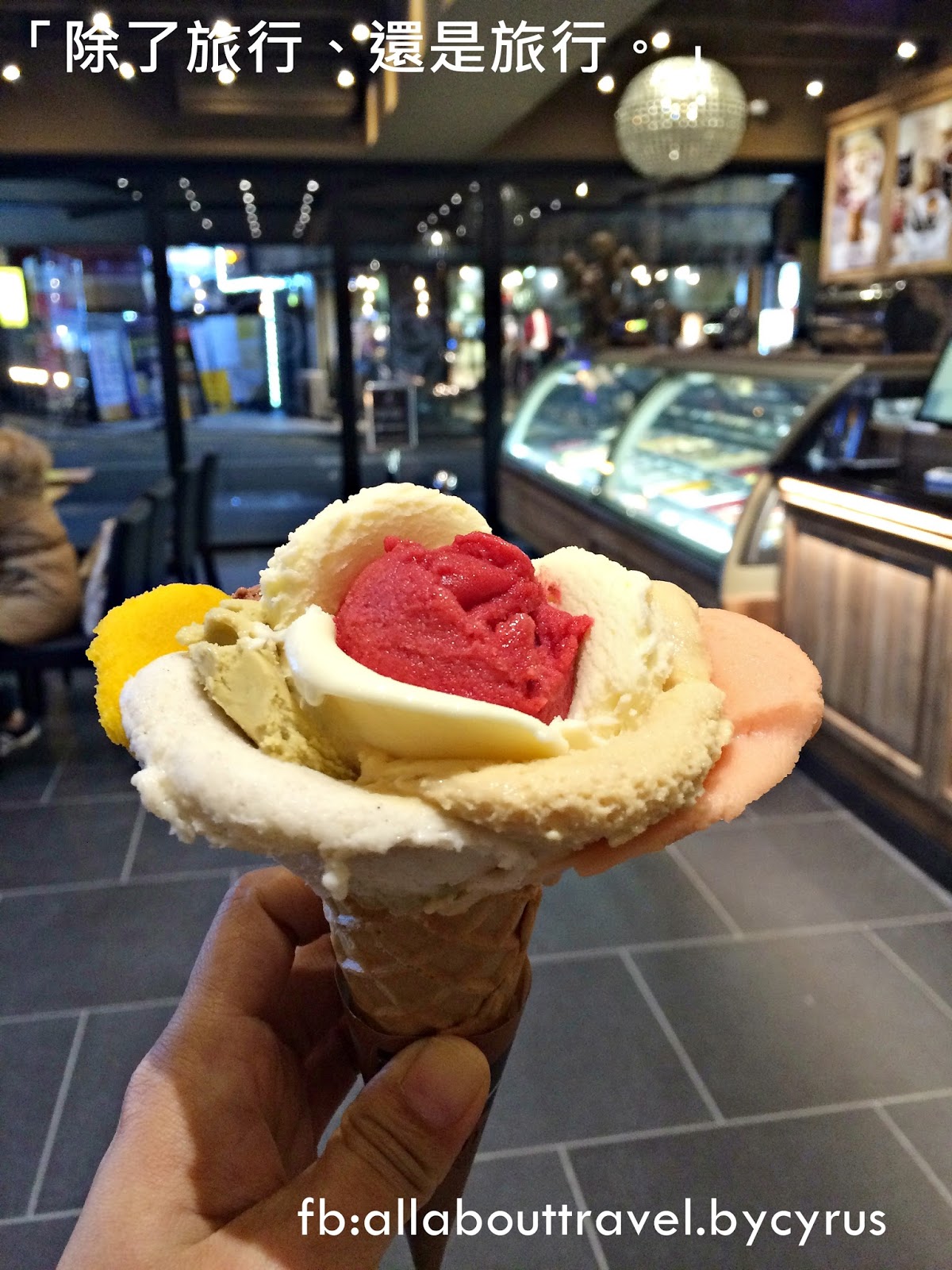 已經吃了3人份豬腳的2人表示想吃些甜點(傻眼),剛好這家在世界各地均有分店的法國gelato 咖啡店開張,女孩子就被美美的玫瑰花吸進去了~~