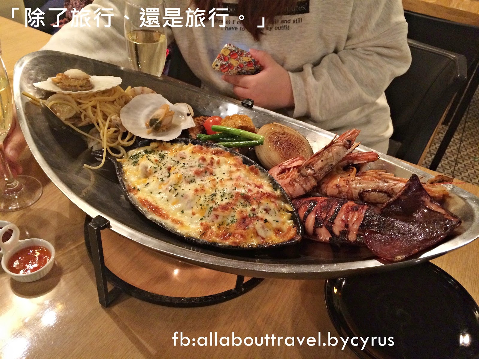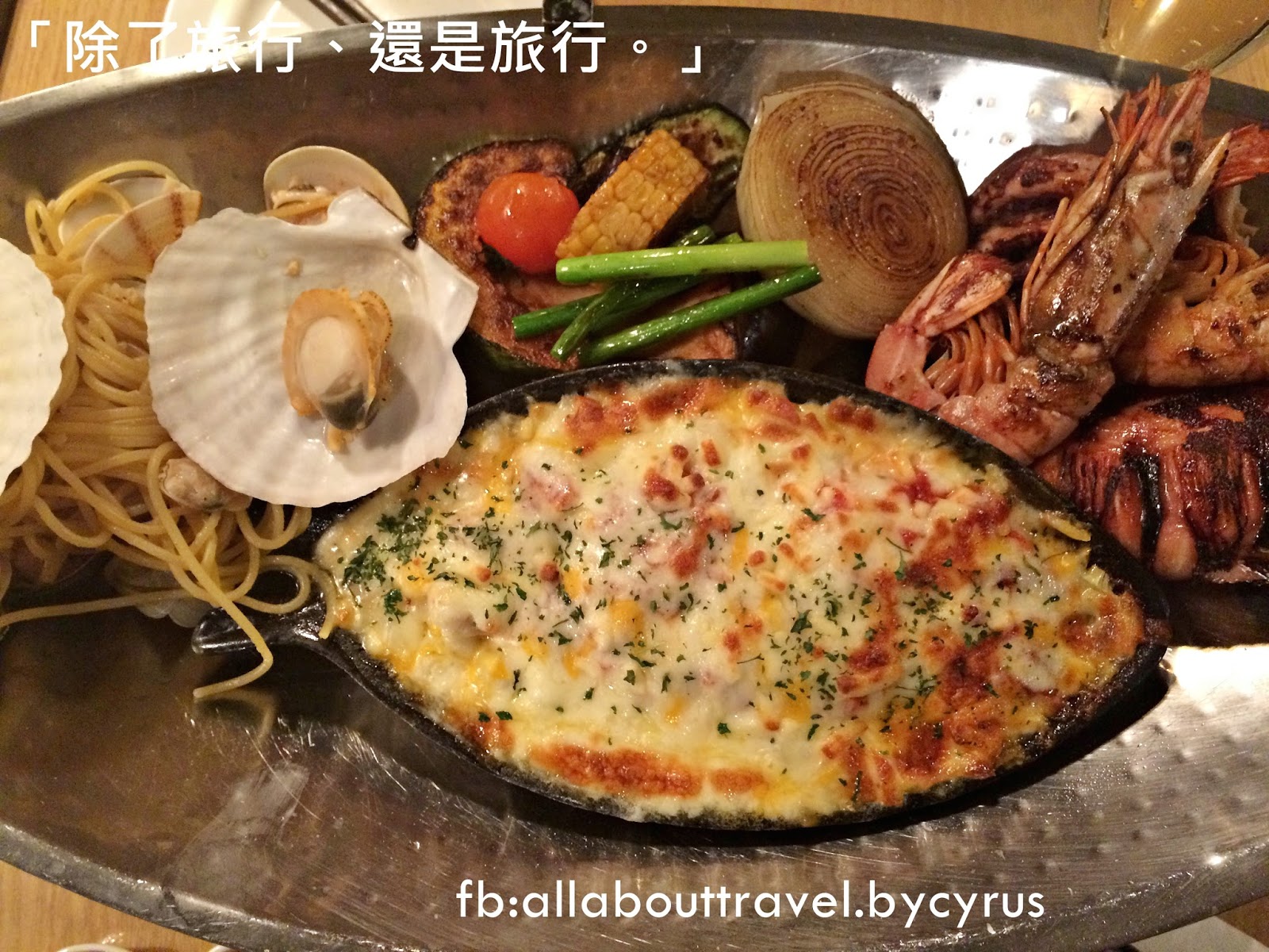 上桌的大盤現烤海鮮令人不禁小歡呼,新鮮的貝殼不用太多調味就已經很好吃,