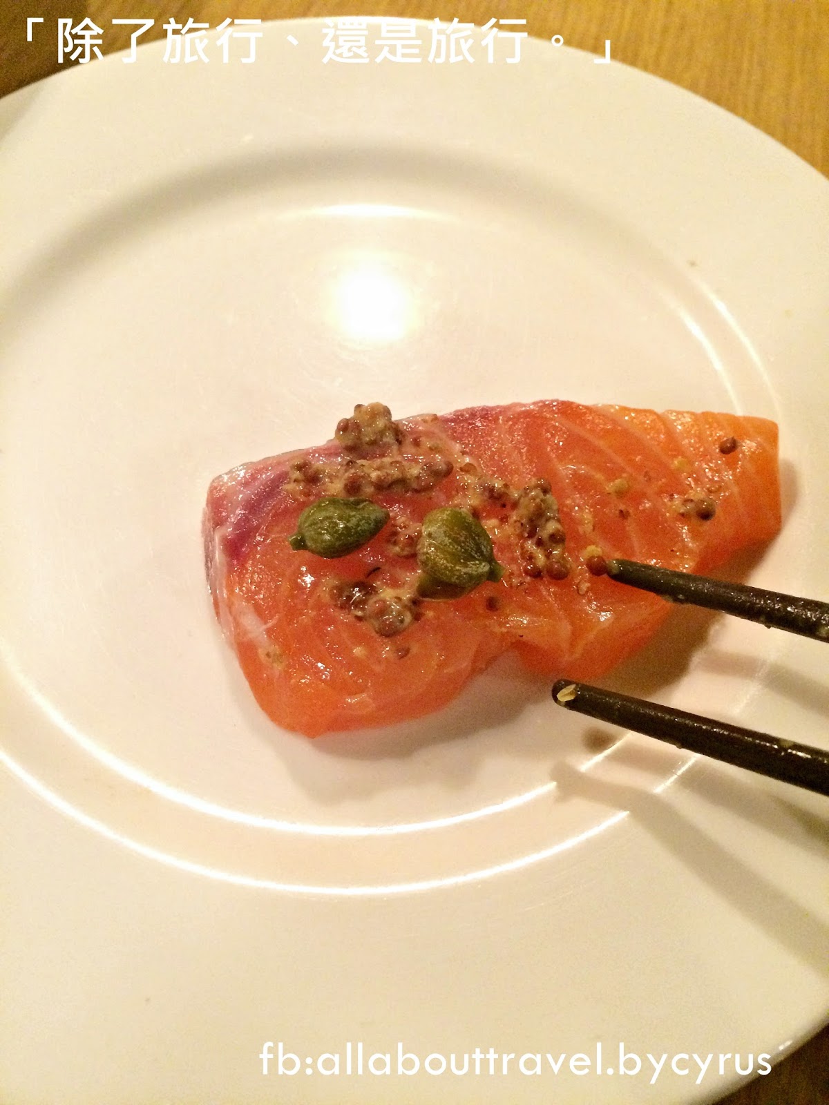 三文魚刺身加上酸豆和芥末,比wasabi 更得我心。