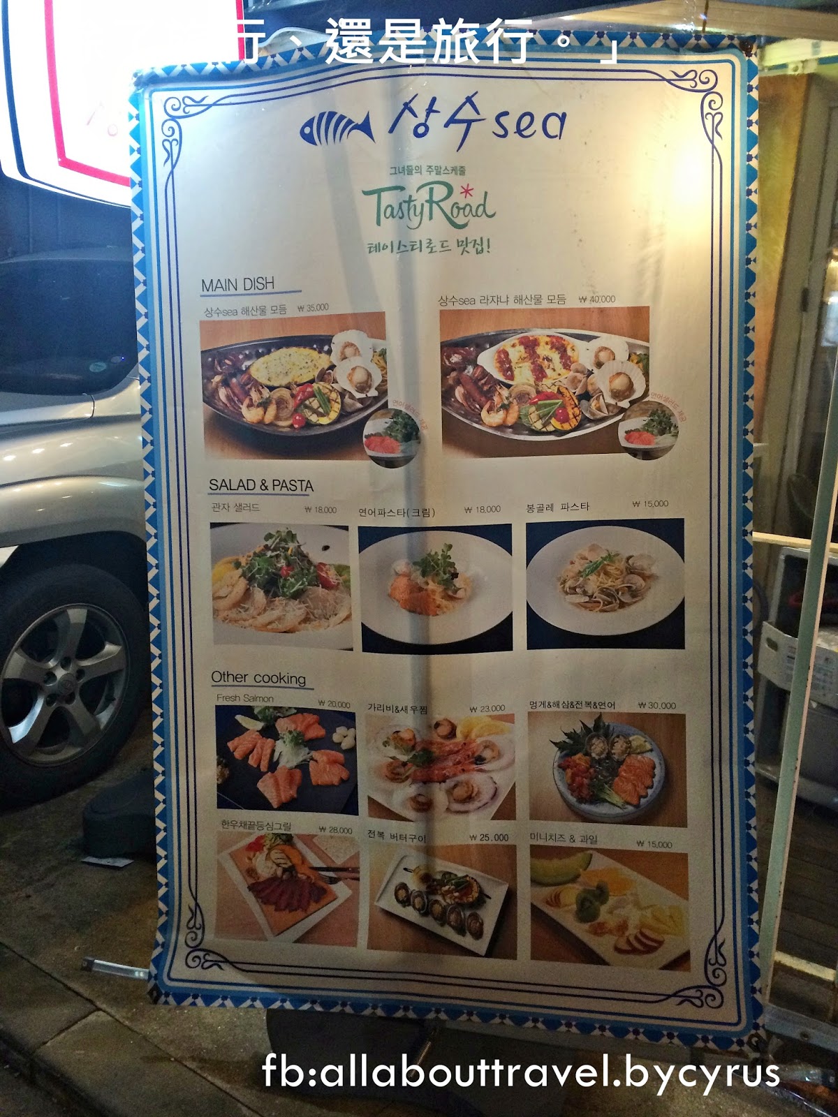 從圓圈內的弘大想像殿堂往合井方向走,第二個街口轉右,走一段小路再轉左便到達上水站Sangsu Sea 。