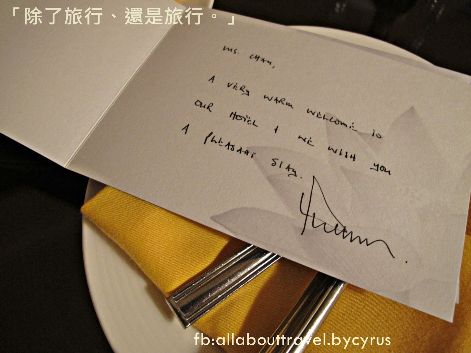 桌上還準備了水果和紅酒(只有一支是免費),還收到手寫小卡片,很貼心。