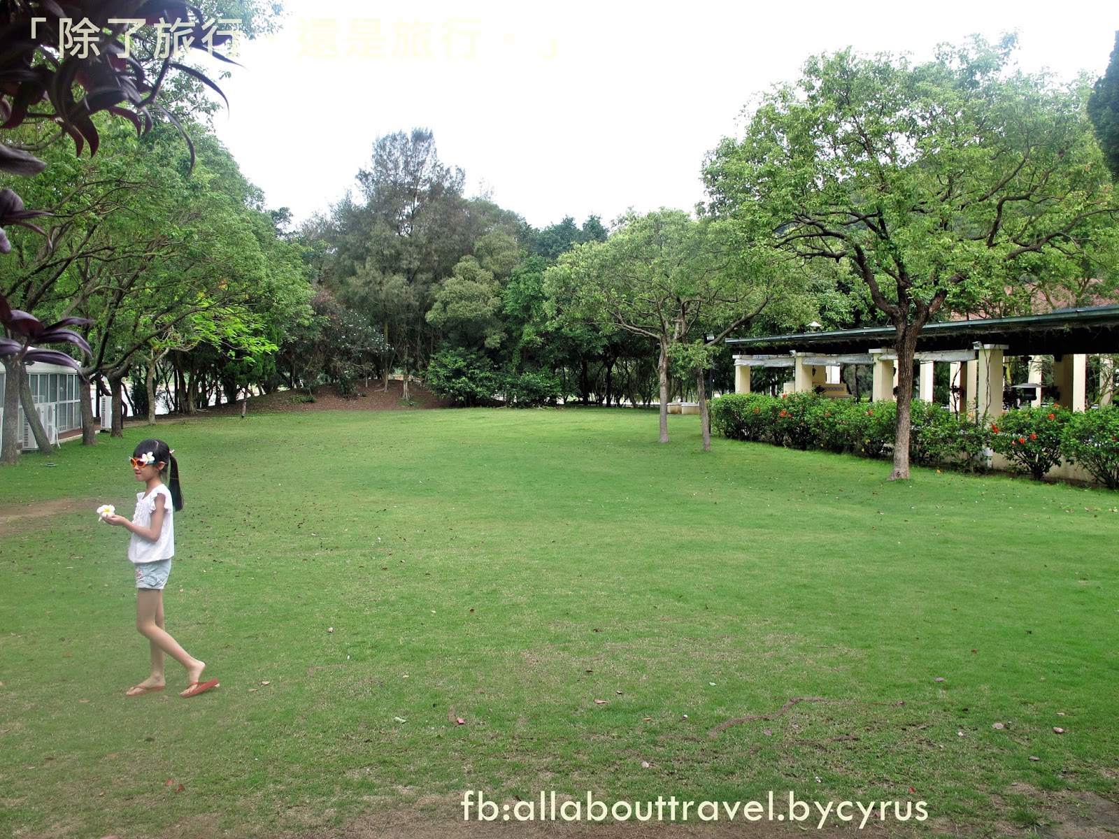 還有一個大草地讓大人小朋友在上面奔跑、閒坐、拾落花,