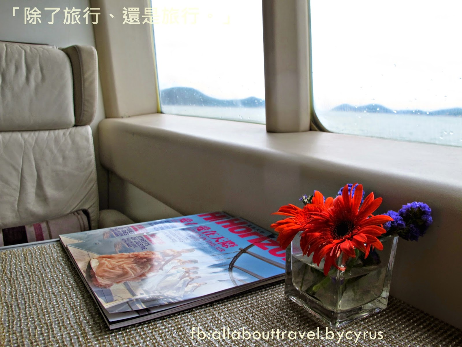 然後我來到至尊貴賓廂,能夠幾個朋友在一個包廂內,看著海景閒聊,也許會覺得一小時的航程也太短了。