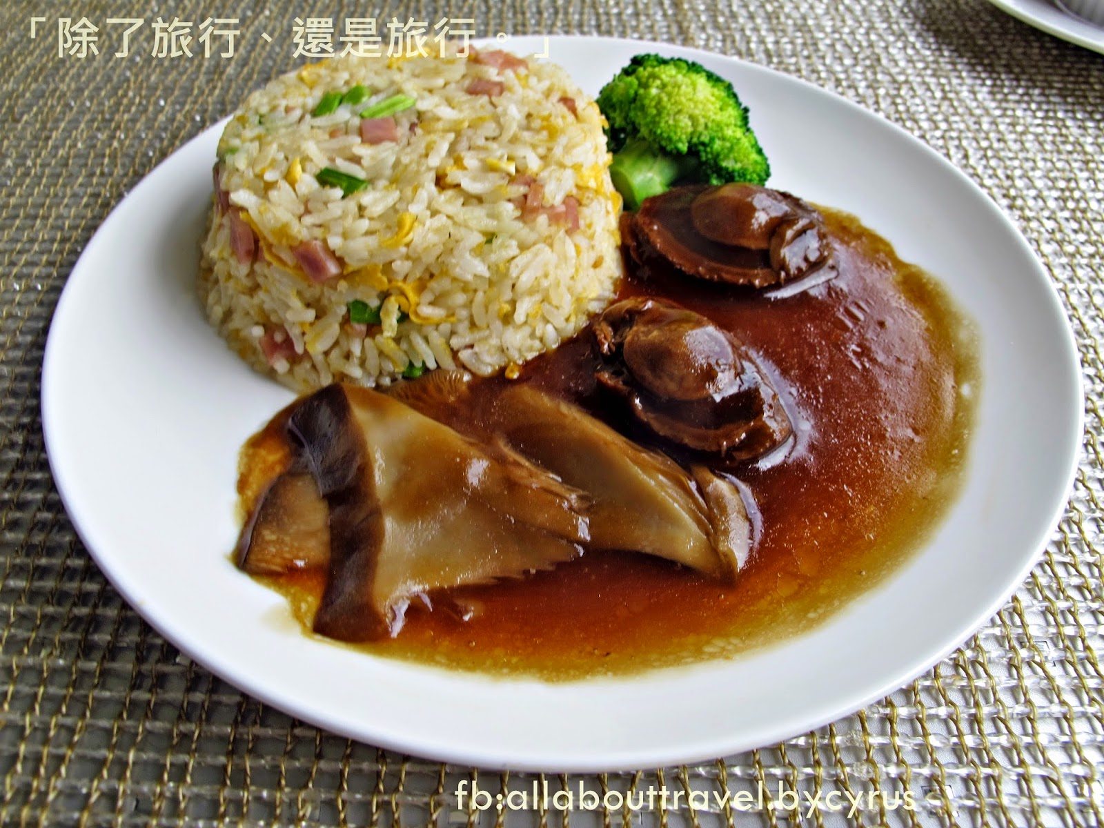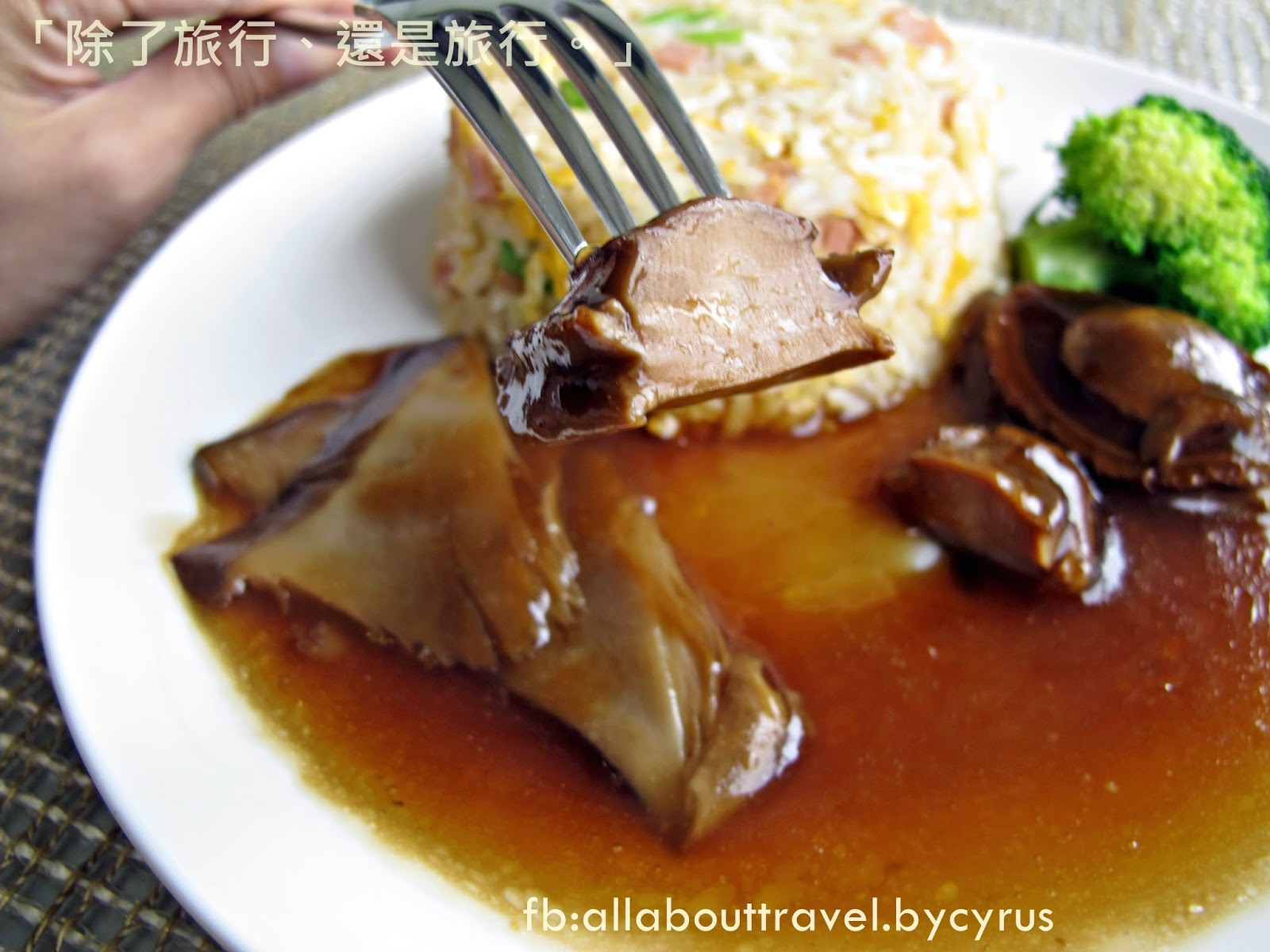 先嚐嚐另一個尊豪位的菜單之一:「鮑魚炒飯」,是2顆乾鮑魚同上的炒飯,吃得出真材實料,,在家裡也沒吃這樣好的我表示欣賞。
