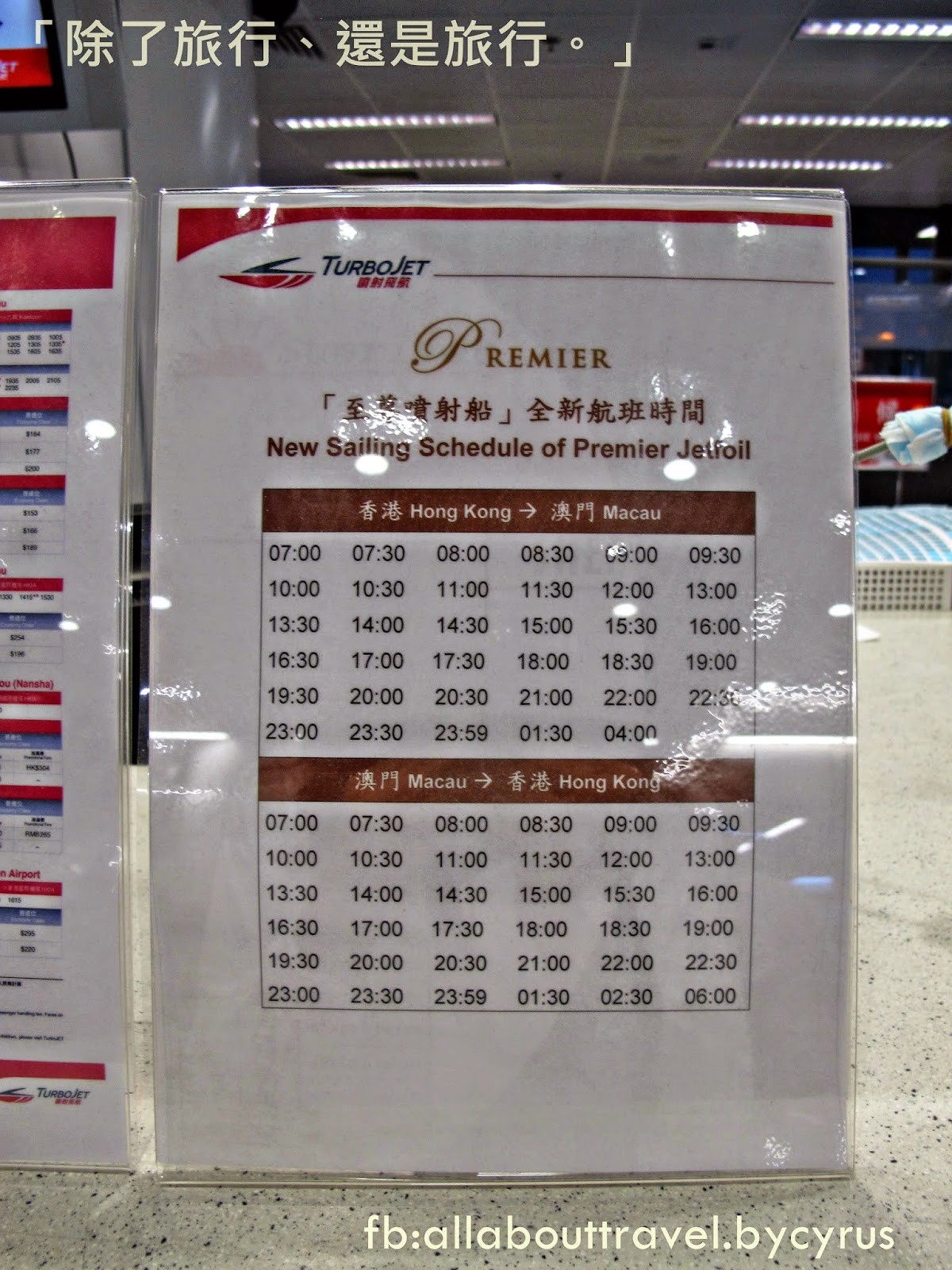 而整點及30分開出的船種為噴射船,聽說會更加平穩,容易暈船的朋友可以作個參考!