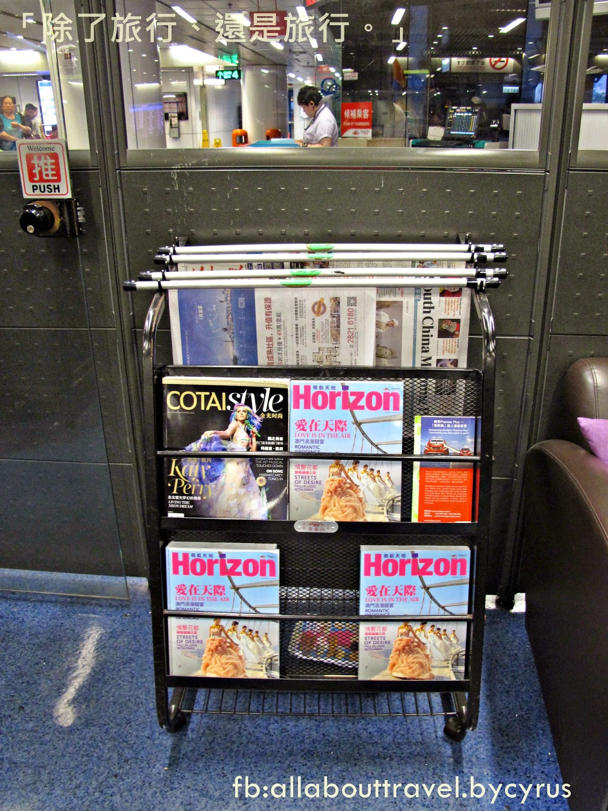 真的想看雜誌報紙消磨時間的朋友,其實也有不少選擇,而噴射飛航Turbojet 的官方雜誌「Horizon」經常介紹不少不為人知的景點,值得一看。