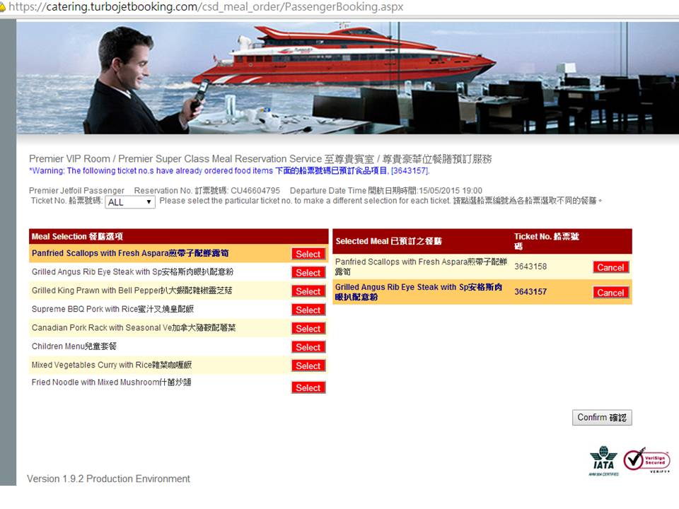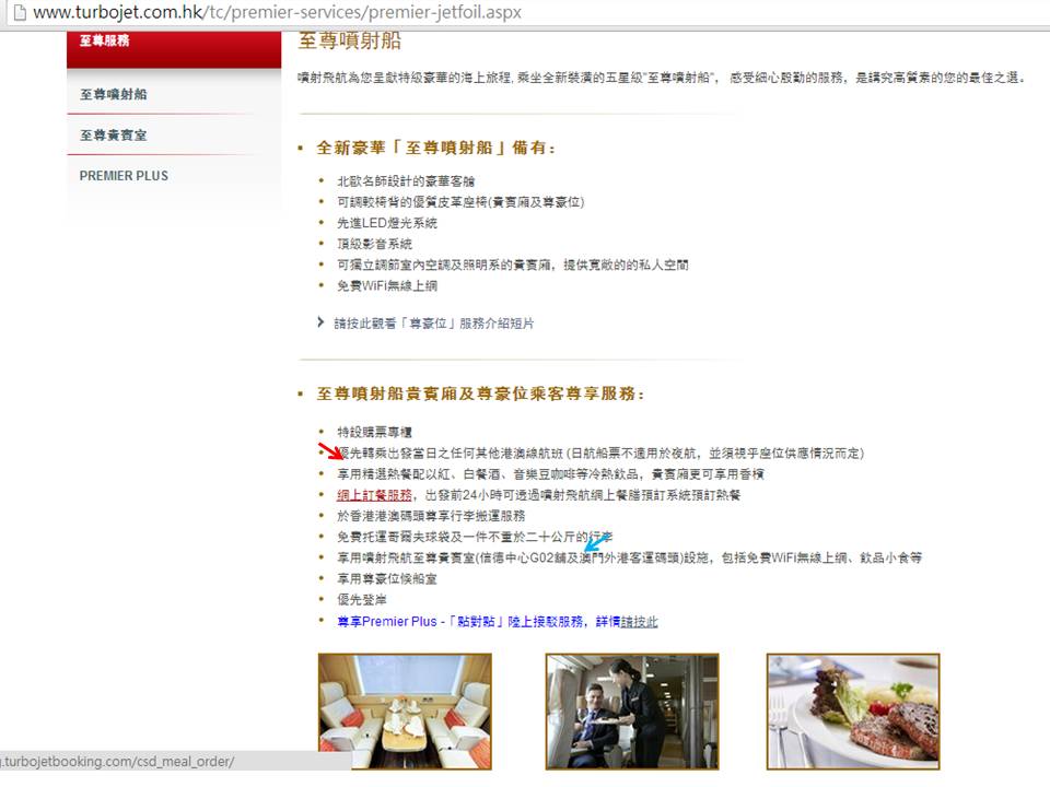 如果是在網上訂票,可以到噴射飛航Turbojet 的網頁,按入至尊服務一項,會出現下面的畫面: