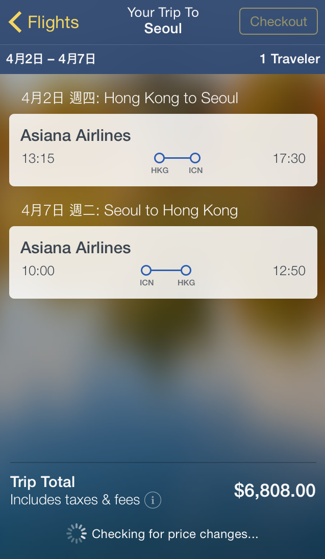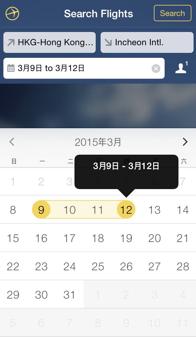 選一下我最熟悉的韓國,揀好日期~
