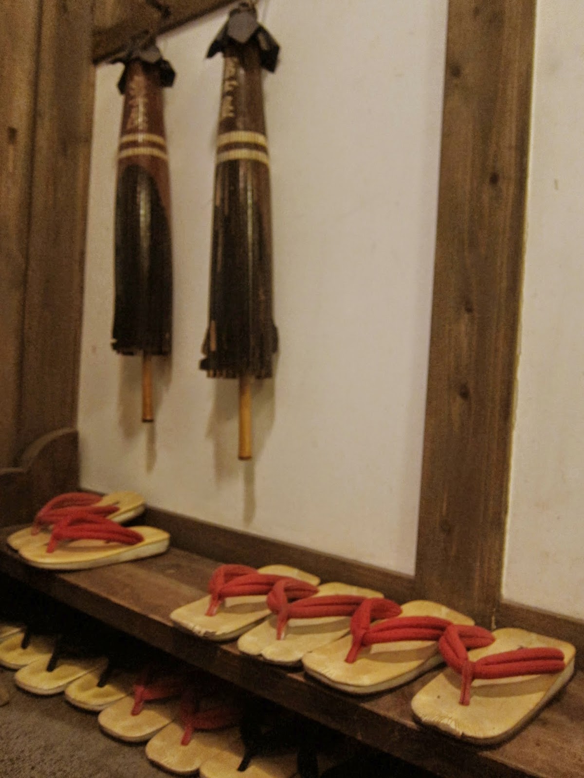 進室內就要換這雙。。去洗手間又要再換另一雙,很多時候我都忘記了,直接把草鞋穿進去,或把膠拖鞋穿出來。換來換去真的很惱人啊..