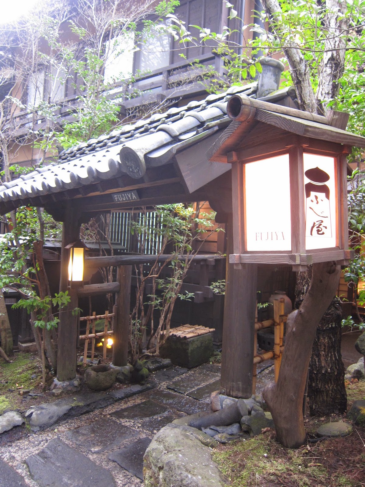fujiya有另一間聯營旅館,想要到露天溫泉的話就要走10分鐘的路。穿著那雙木屐加上綁得緊緊的浴衣走上山路,還真的有點難度。