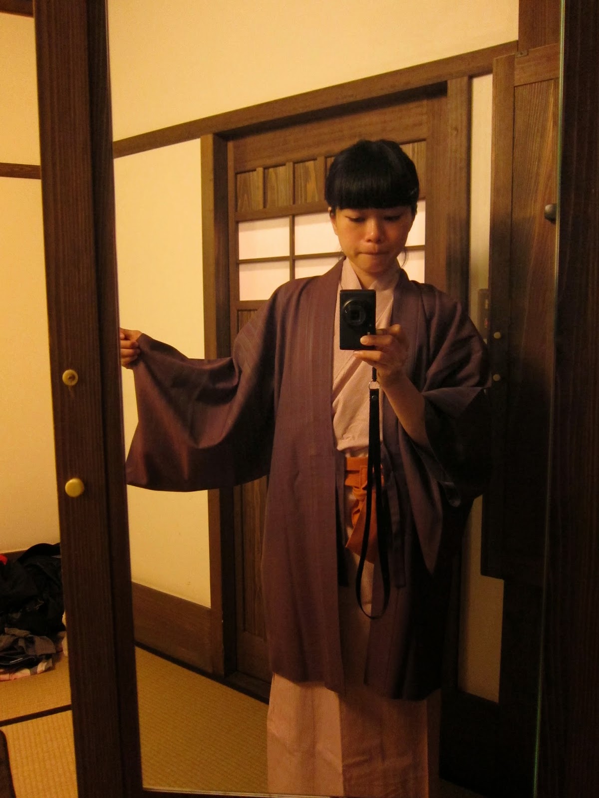 穿這件層層叠的浴衣也不是很容易,主要是因為結怎樣打都打不好,走不了多遠又鬆了。