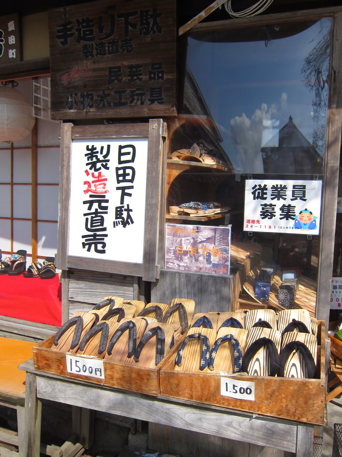 怪不得這裡的紀念品店都賣木屐了,連地上都有一雙啊!可想而知木屐代表了江戶時代,也代表了豆田町!