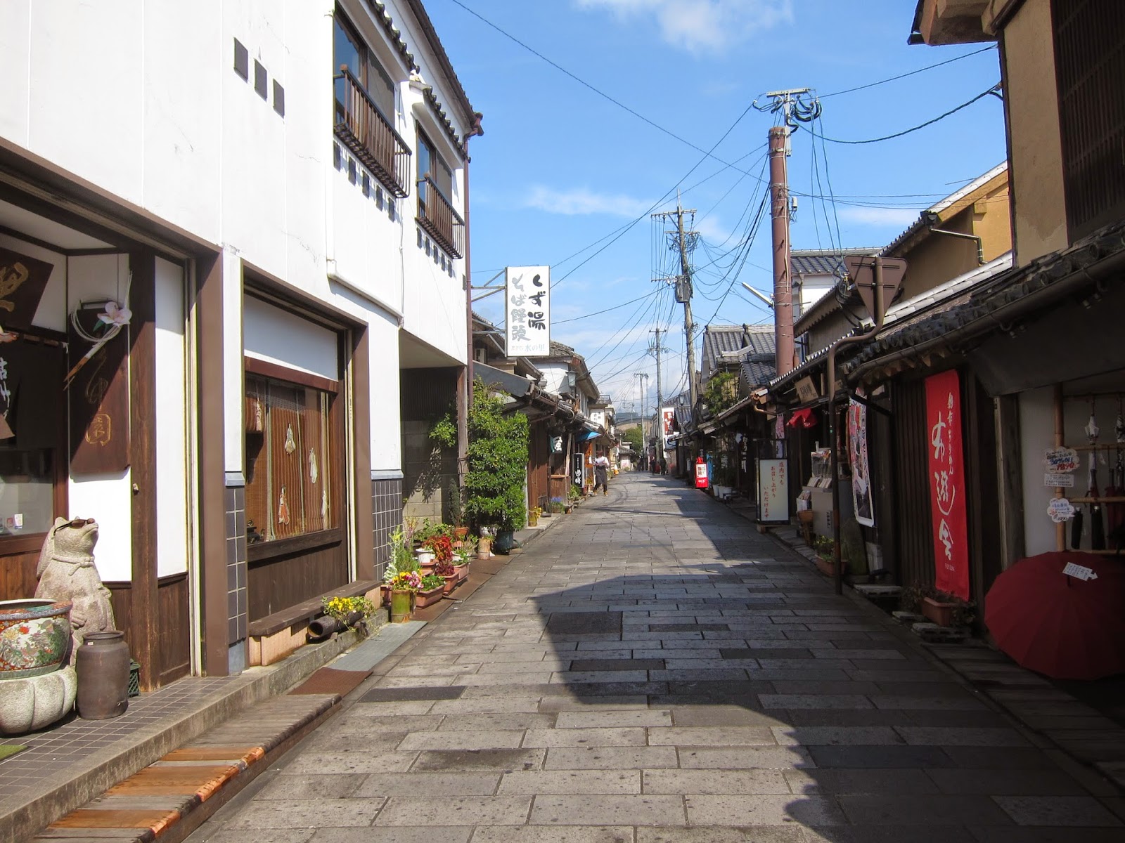 越往前走越感覺不對勁,怎麼開始看到現代化的房子了,我不是往16世紀的豆田町的路上嗎?為什麼會越來越接近20世紀了?一面疑惑的我很快便得到一位不懂日語的伯伯相助,溝通不成又找來看似是兒子的男人來幫我。兒子也不懂英語,我指著地圖上的豆田町,又指著向前走的方向,做一個詢問的表情,把身體語言的學問盡情發揮。他研究一下我的地圖,指著地圖以外的地方圈了圈,告訴我驚人的事實:我已經走到地圖沒有顯示的相反方向了!!!!