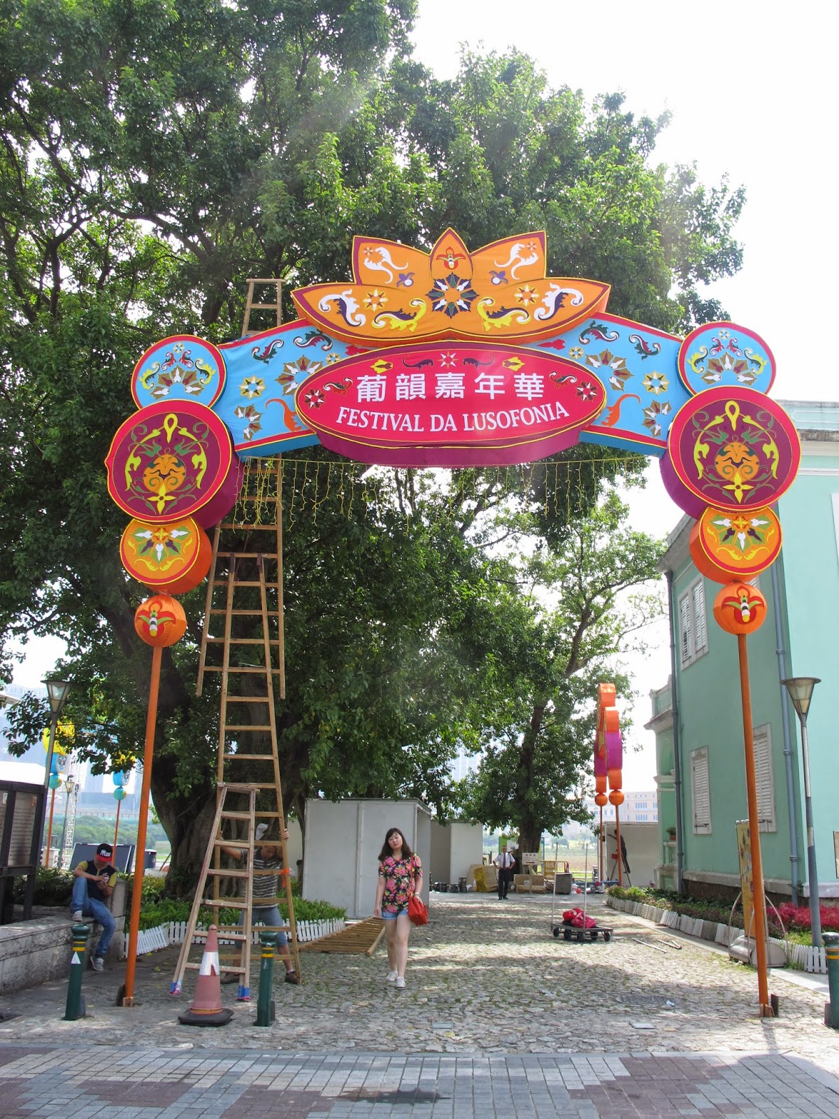 嘉年華準備中,這裡除了攤位,還有本地歌舞表演,來自巴西、葡萄牙、幾內比亞紹、莫桑比克等等葡語國家的表演者將會帶起整個嘉年華的氣氛。