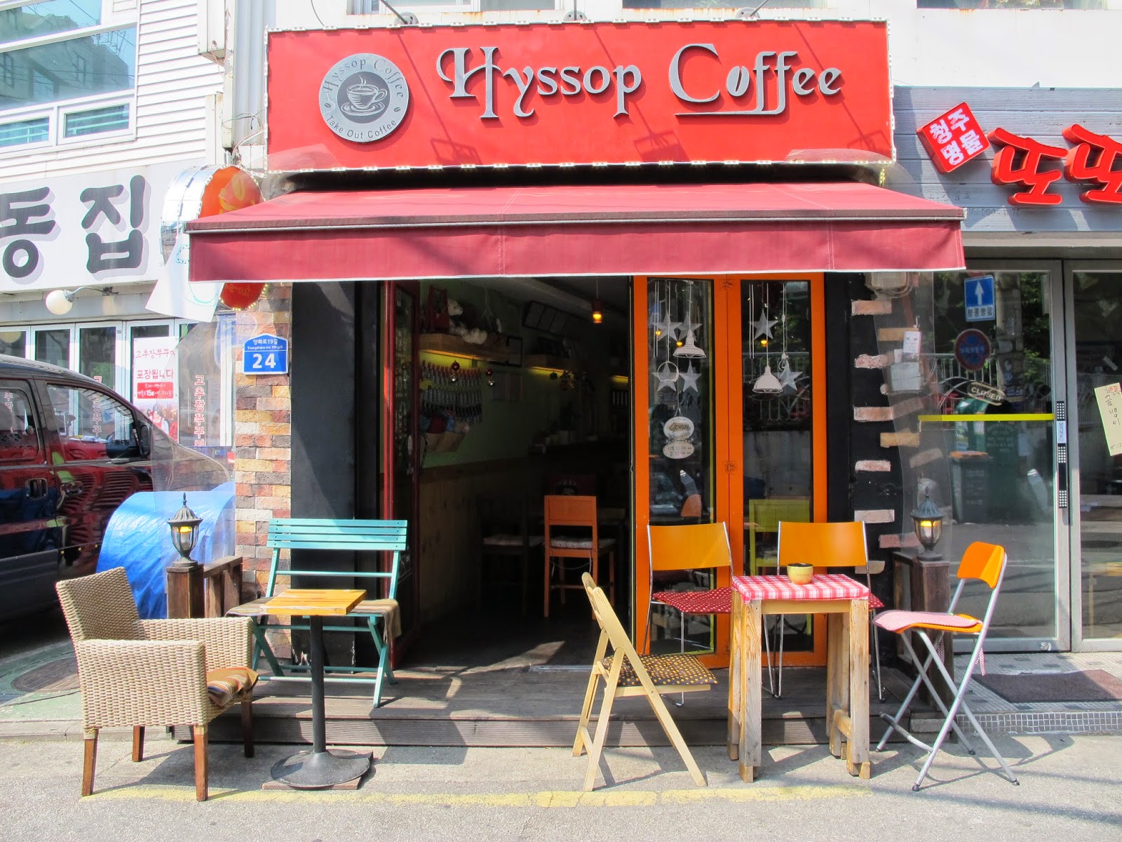 在背包客棧附近散步,才發覺原來在繁華的弘大商圈,還有一個寧靜的角落,巷弄裡盡是個性咖啡店、外國風餐廳。