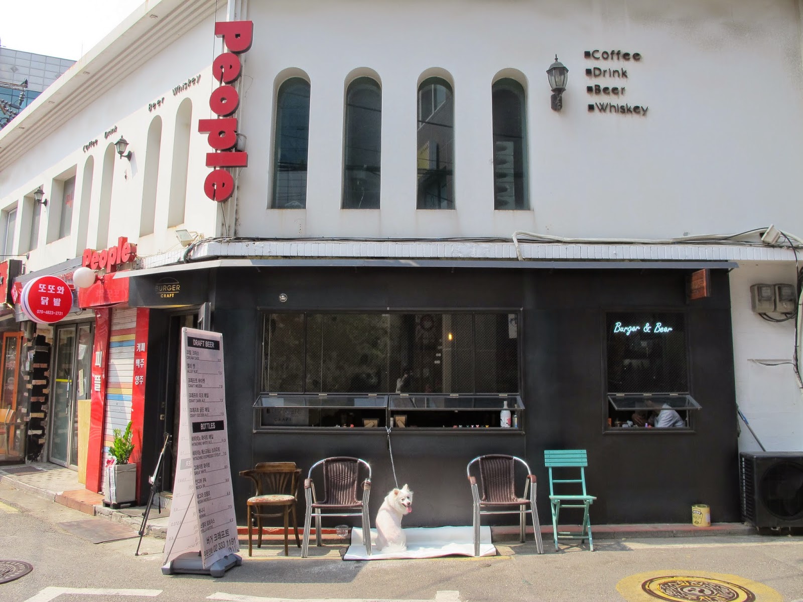 轉角,還是咖啡店,還有被栓在外邊的小狗在吐舌頭。