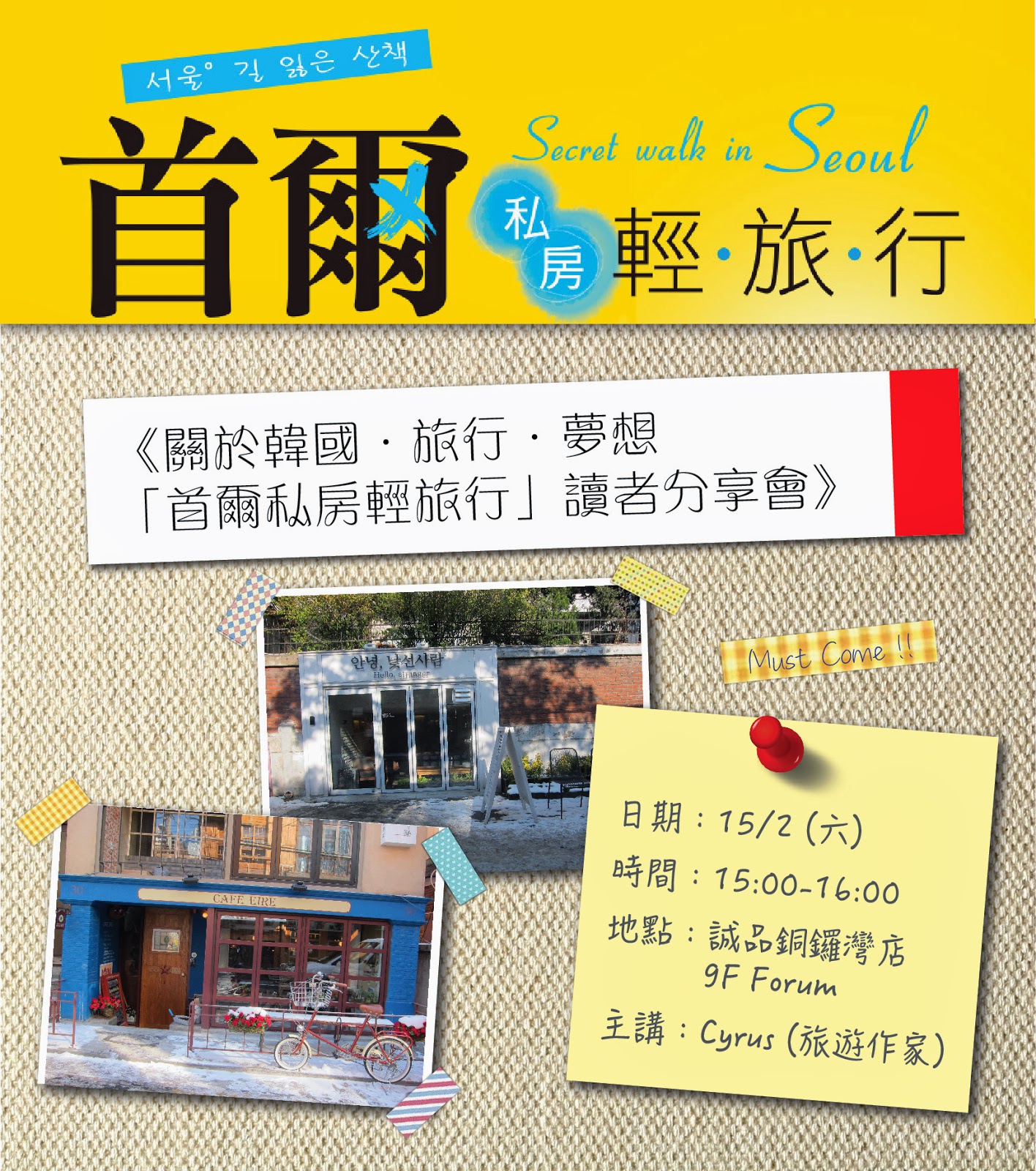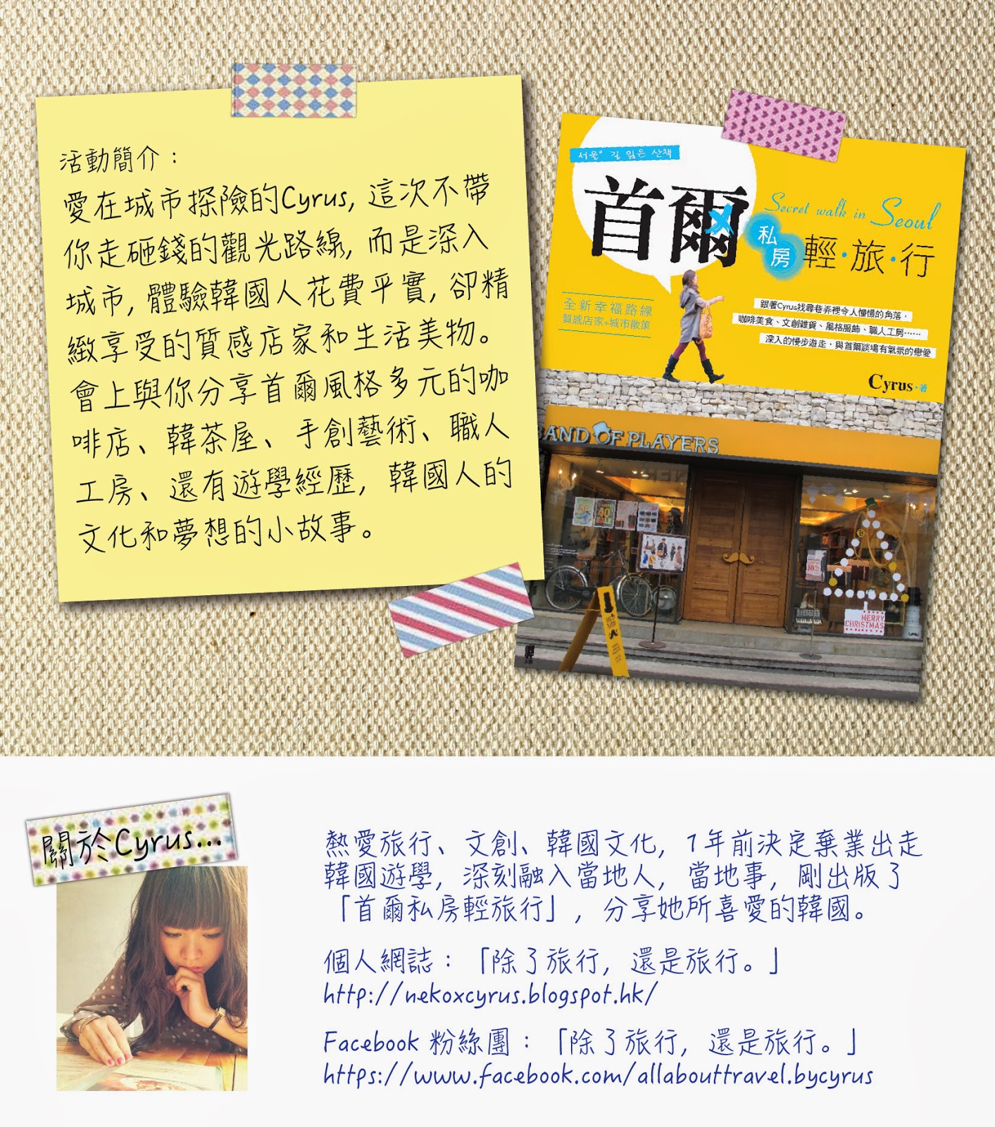 活動:關於韓國。旅行。夢想。「首爾私房輕旅行」讀者分享會