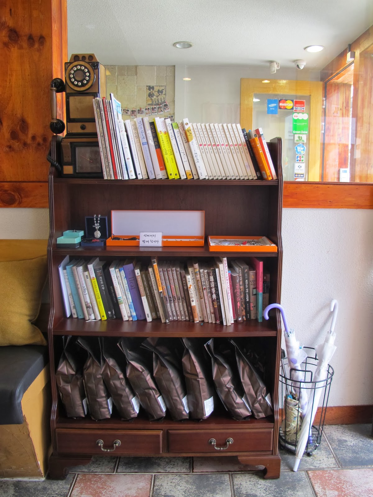 這天在梨大,人潮把我迫進小巷,用咖啡豆粗糙砌成的標示牌,就是令我心頭一暖的小道具。
