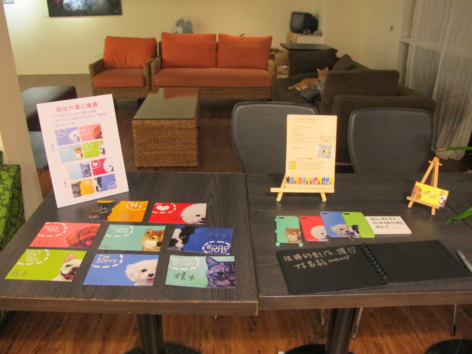 關於寵物的展覽,明信片和iphone case的收益會捐給流浪貓狗的組織,是很有心的藝術家。