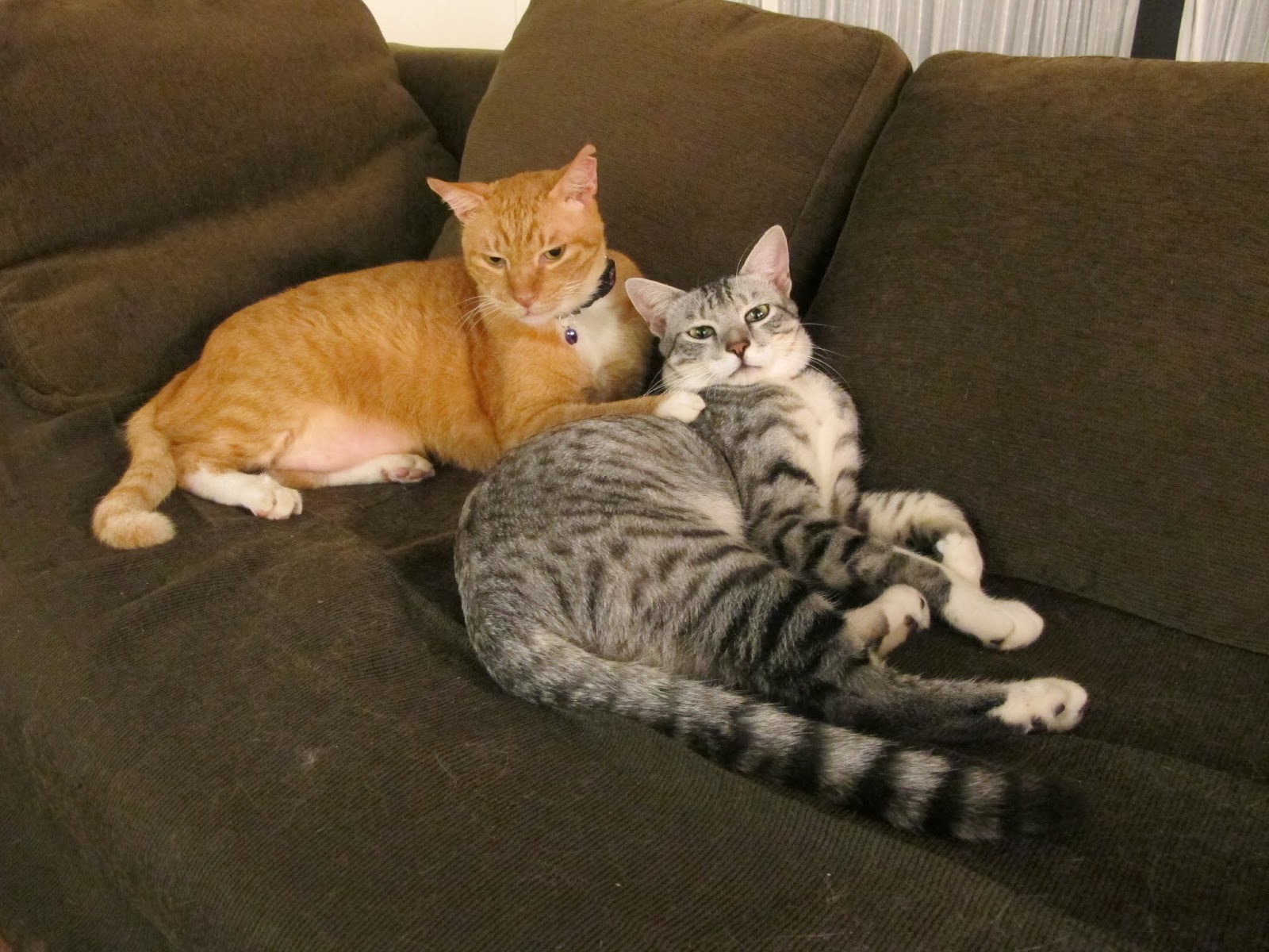 轉頭便看到真實的貓咪們在沙發上躺得舒舒服服,訓練有數的牠們對鏡頭好像頗敏感。