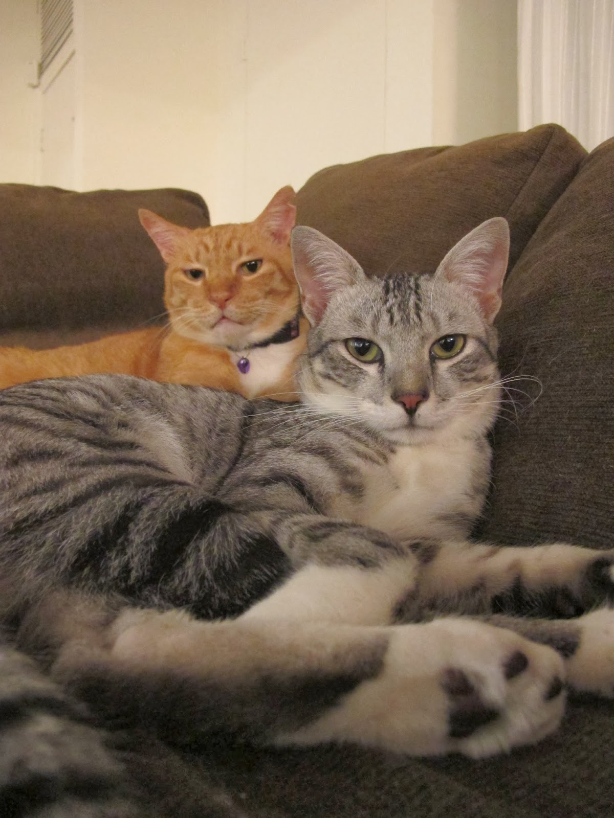 就輕輕摸一下牠的頭,兩只貓咪就擺出這個令人融化的表情。。