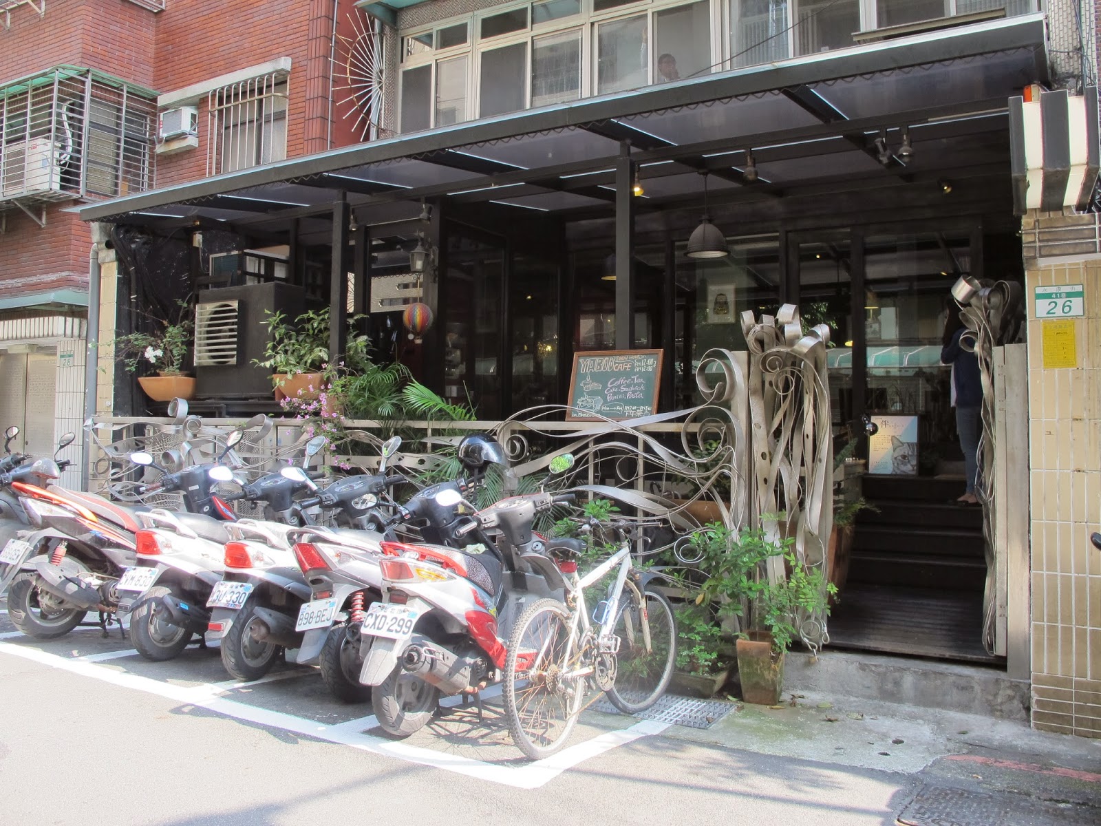 外面排滿了摩托車,也是台灣的獨特風景之一。