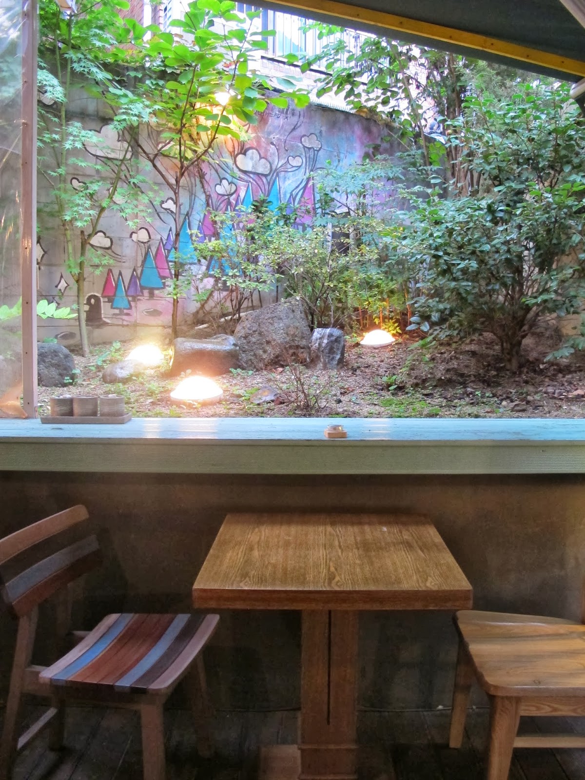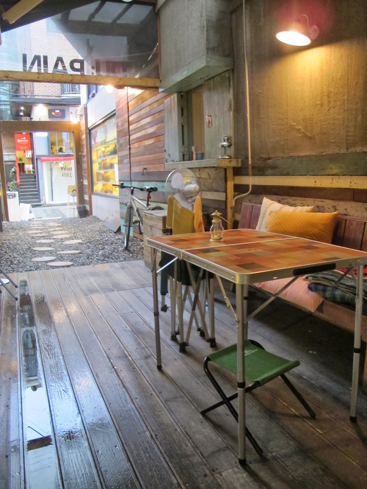 在弘大的Cafe Du:pain,甚至不用忍受那一切不便,就能給人在野外露營的感覺。