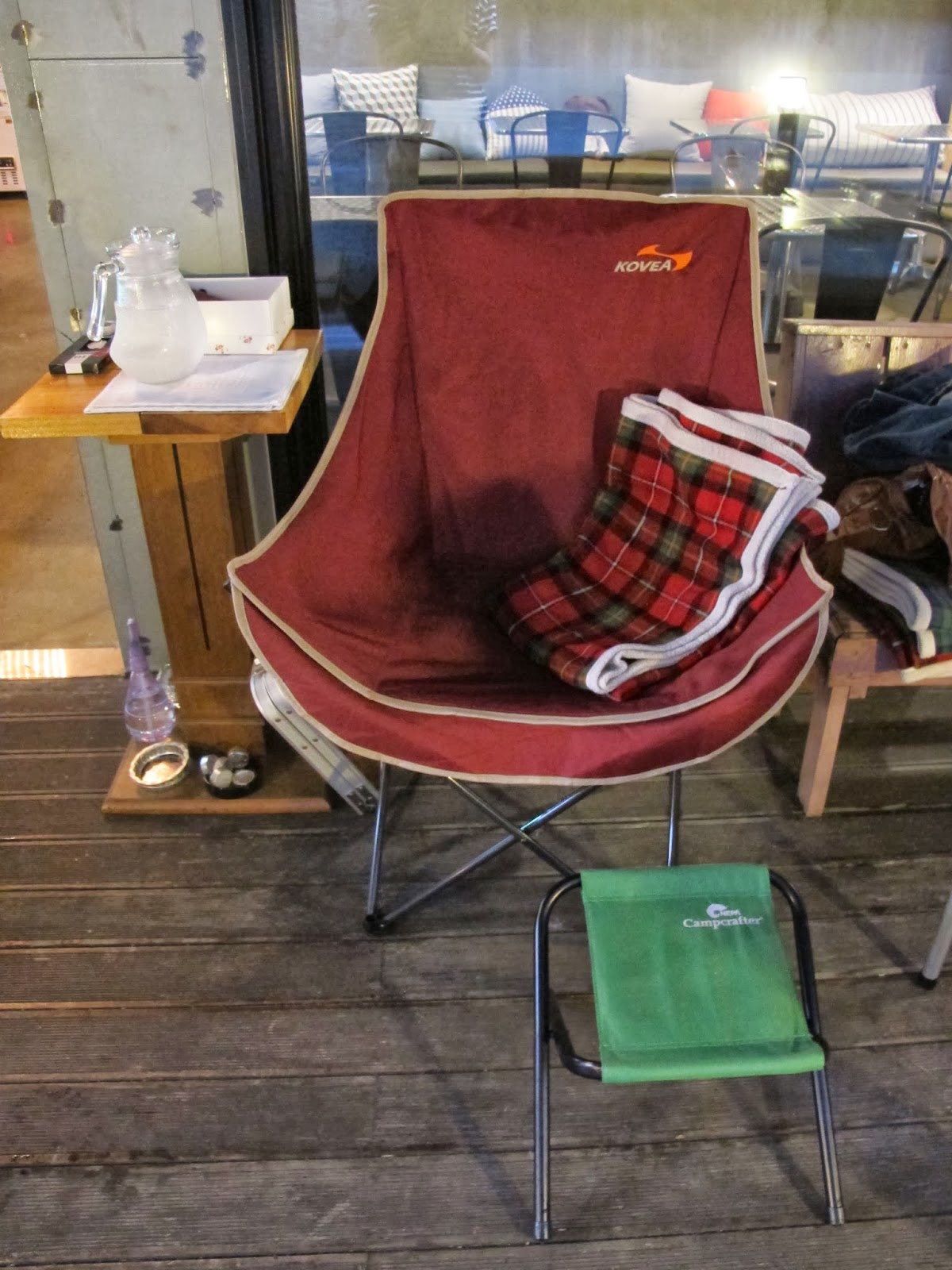 好吧,我承認我是有點誇張了,不過那刻意營造的粗糙木工,小石頭路,小花園和桌上的小油燈,還有讓人坐下去就不想再起來的露營帆布椅子 -